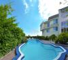 В распоряжении маленьких гостей санатория - 3 часть пляжа с мелкой галькой, "лягушатником", детской площадкой, на которой множество качелей, лесенок, песочниц.