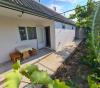 Узкий пляж, полностью покрытый песком, подходит для спокойного отдыха.
