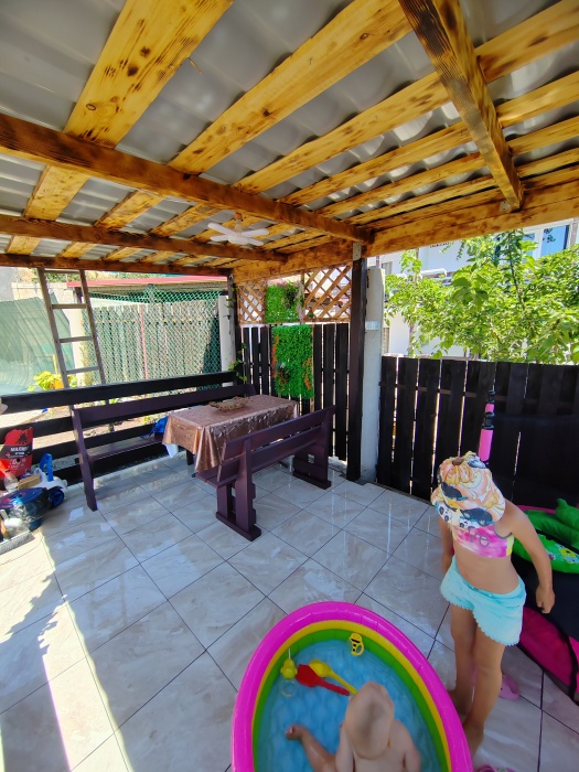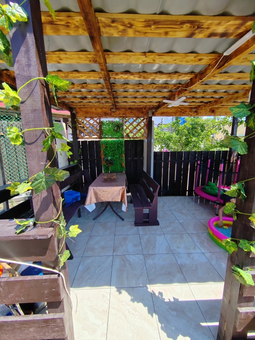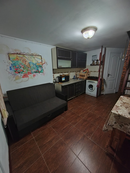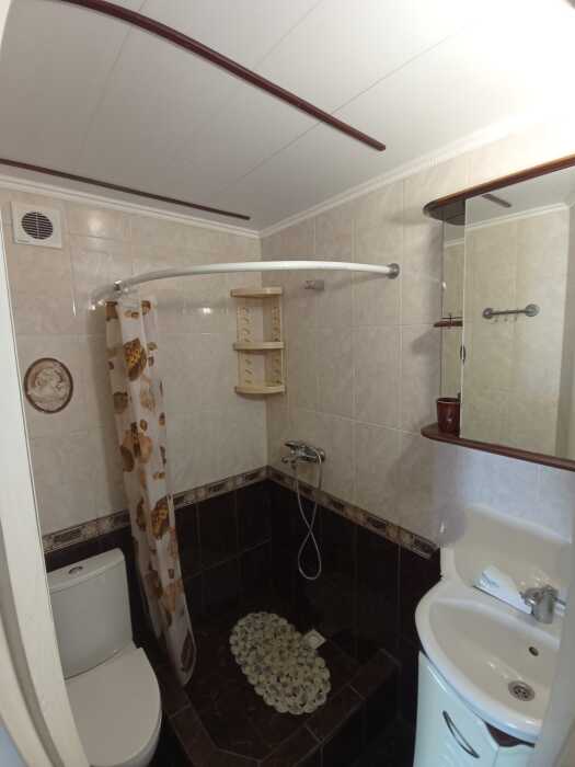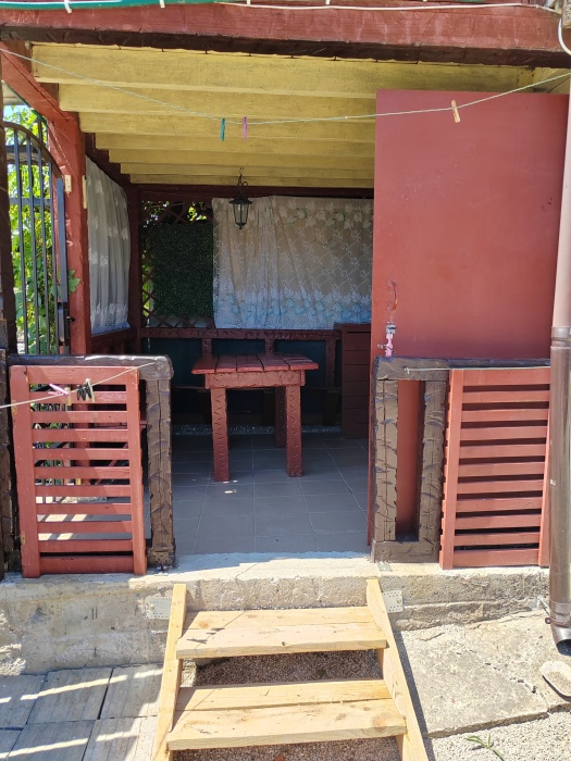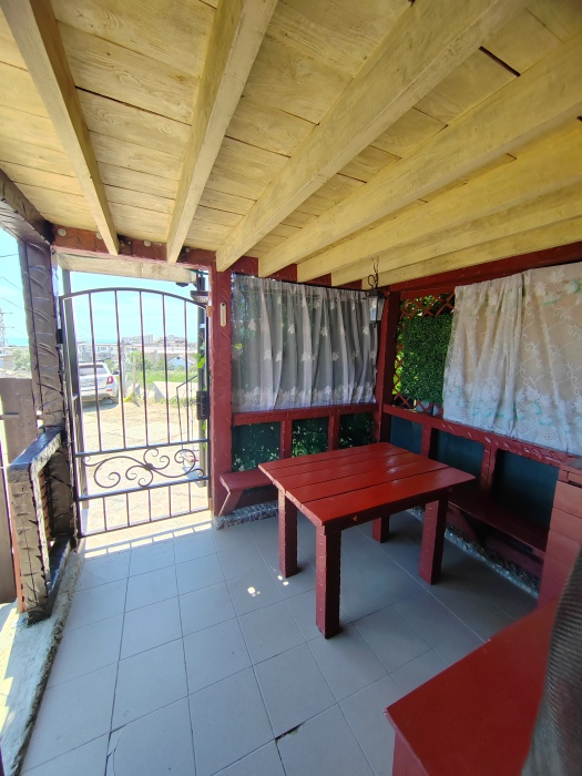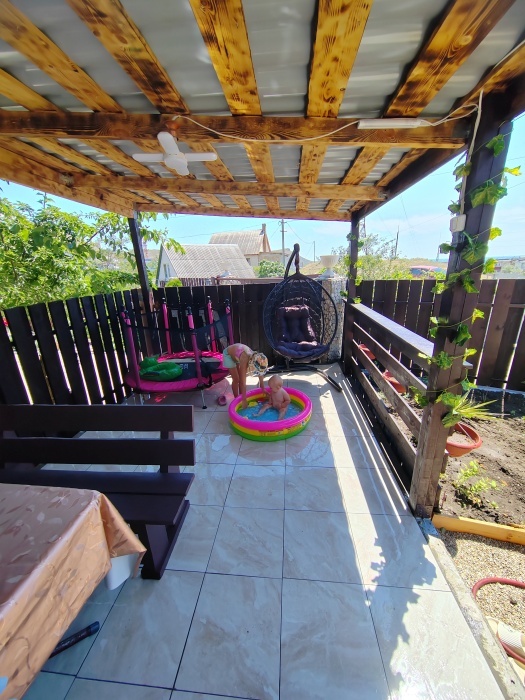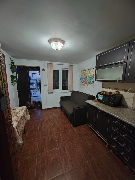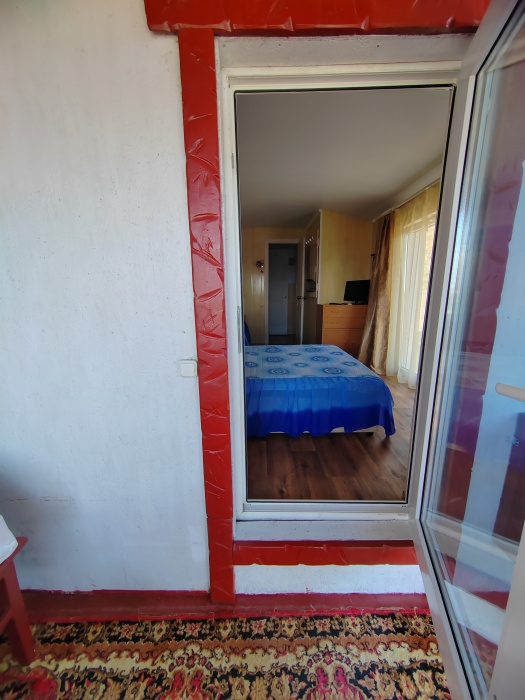 Сдаётся дом на три комнаты. на первом этаже сначала идет балкон,коричневая кухня, коричневый санузел и зелёная комната на 4 чел с кондиционером и телевизором.