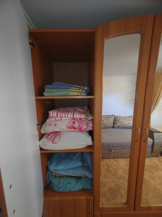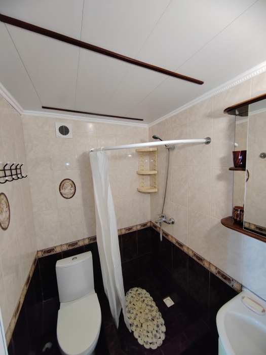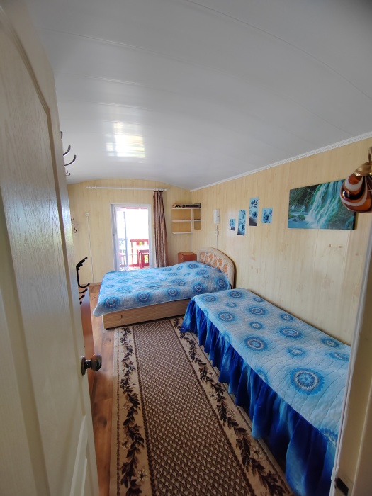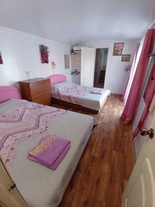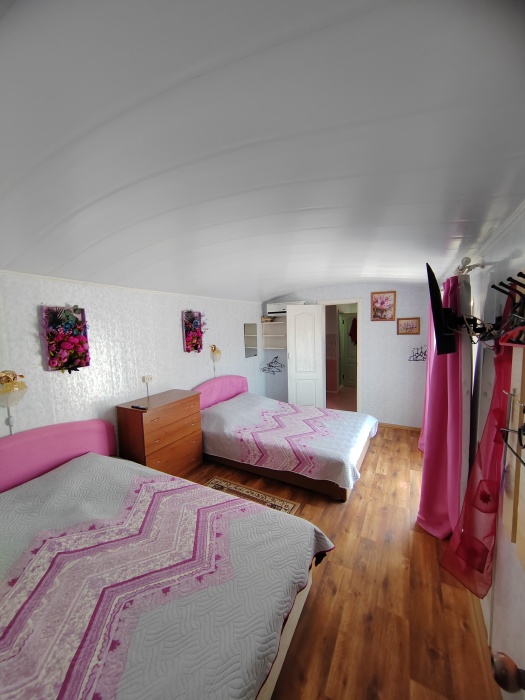 Также есть шкаф ,двуспальная кровать и односпальная кровать.на 2 этаже налево комната на 3 чел,с кондиционером,телевизором,балконом, санузлом, направо комната сиреневого цвета на 4 чел с двумя двуспальными кроватями,кондиционером, телевизором,кухней и санузлом.