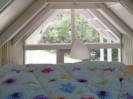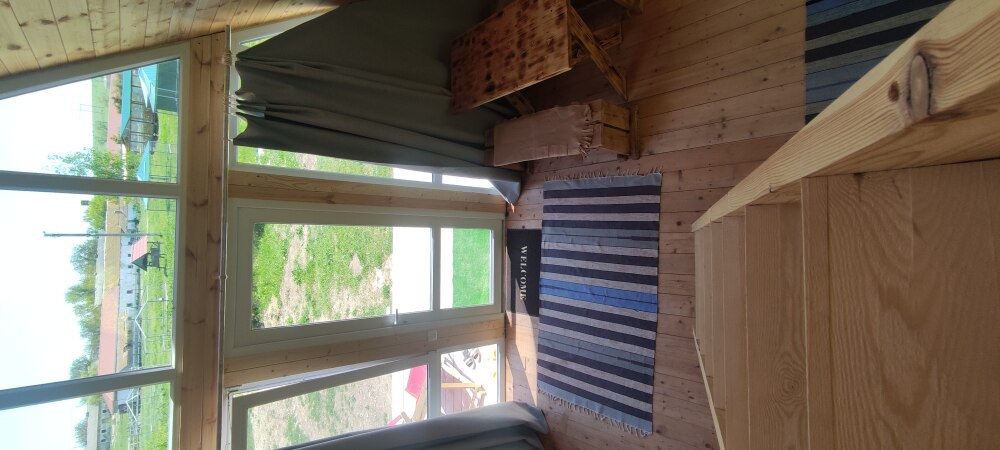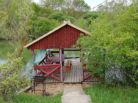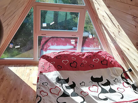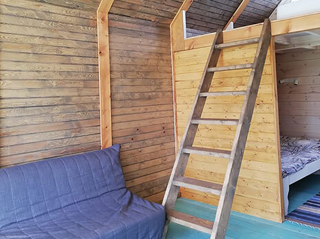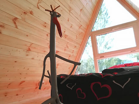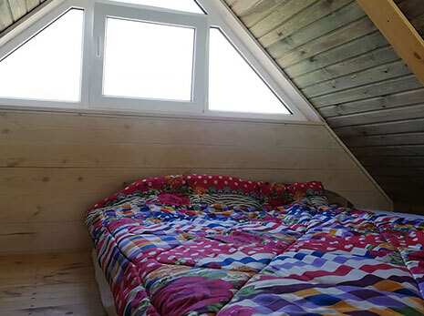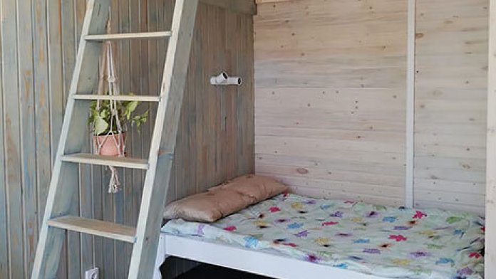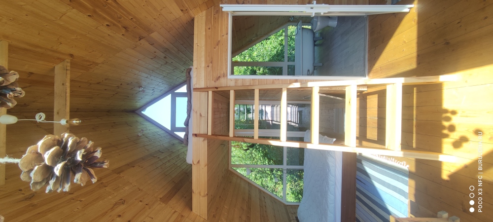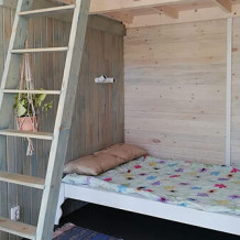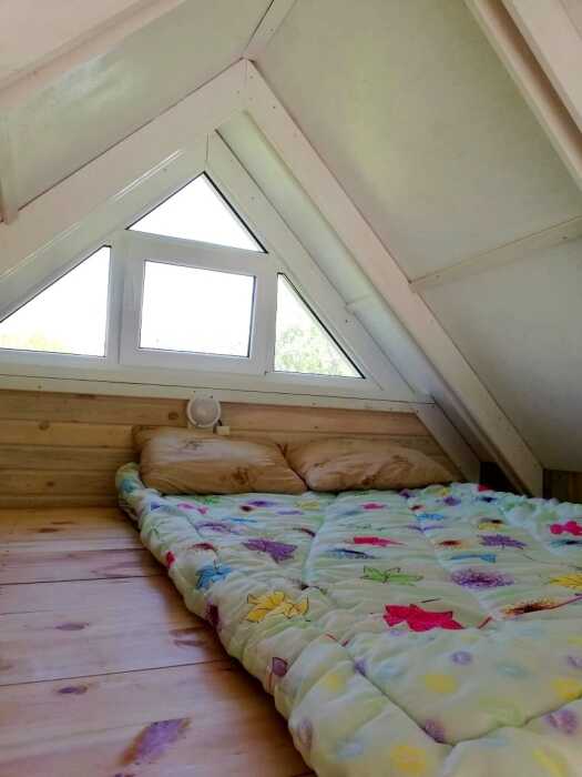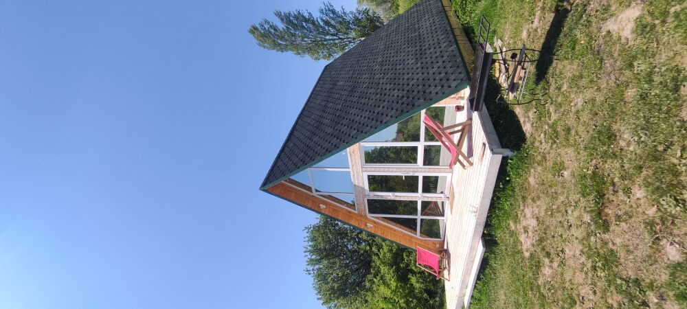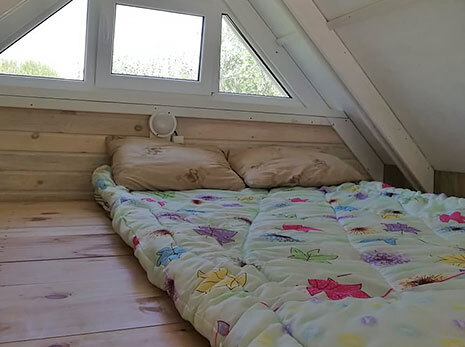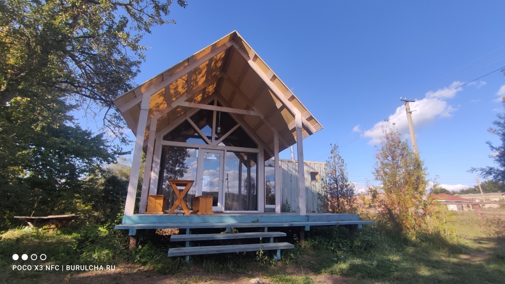 Расположен около леса, недалеко от речки, слышно её журчание. Тишина, покой, красивый вид. Есть возможность размещения дополнительной кровати.