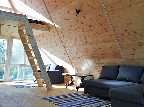 Одноэтажный коттедж-студия со вторым светом. Идеален для тех, кто хочет уединения или путешествует один, для влюбленной пары, семьи или компании из 3-4 человек.