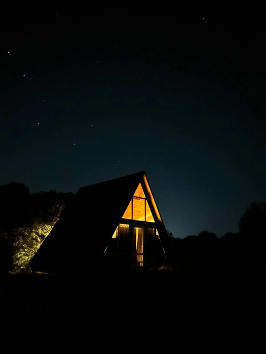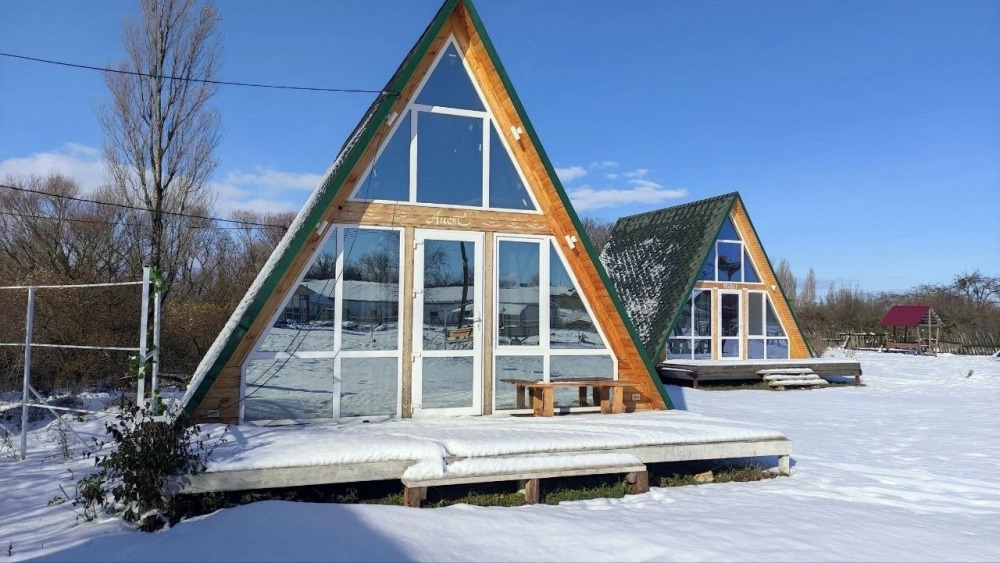 Уютный домик в стиле А-фрейм со всем необходимым для проживания в любое время года