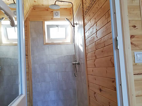 На каждом из этажей имеется санузел и душ с горячей водой, чайник, холодильник. Терраса и балкон с красивым видом.