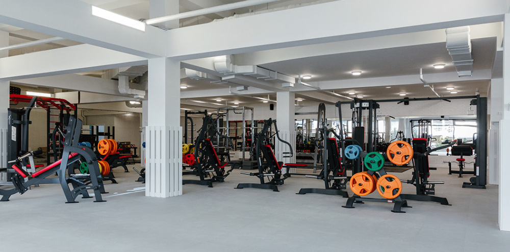 На территории комплекса располагаются: фитнес-центр, спортзал, площадка для бокса и боевых искусств, тренажерный зал, спортивные площади - волейбольная, баскетбольная, пляжный футбол, теннисный корт, залы для проведений занятий по аэробике, степ-аэробике, пилатесу, кайлатесу, йоготерапии, йоги, физическое реабилитации, танцам.