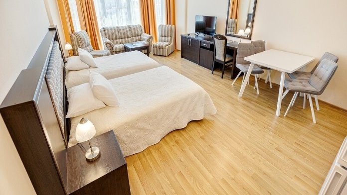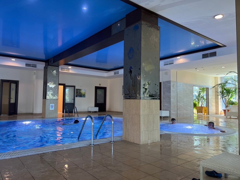 - современный банно-бассейный комплекс: комплекс «Аквамарин» - бесплатно: (современный бассейн с детской зоной и джакузи, оснащенный водными аттракционами и гидромассажем, 4 вида бань и саун: финскую, русскую, турецкую (хамам) и римскую. Комплекс «АкваДелюкс» - 10 разновидностей саун и бань, 7 купелей, просторный бассейн с солёной водой 25 м в длину, площадью 300 м2, детский бассейн, большая соляная пещера.