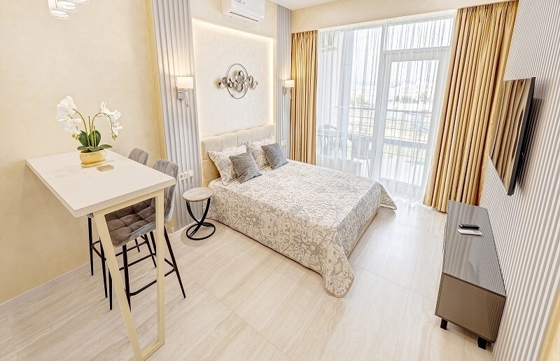 Мы предлагаем проживание в комфортабельных апартаментах на территории одного из самых масштабных курортов на побережье Крыма. Комплекс расположен на первой линии у моря в зеленой парковой зоне.