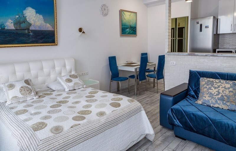 в стоимость апартаментов для отдыха с детьми в Севастополе входит бесплатное пользование инфраструктурой курортного комплекса: