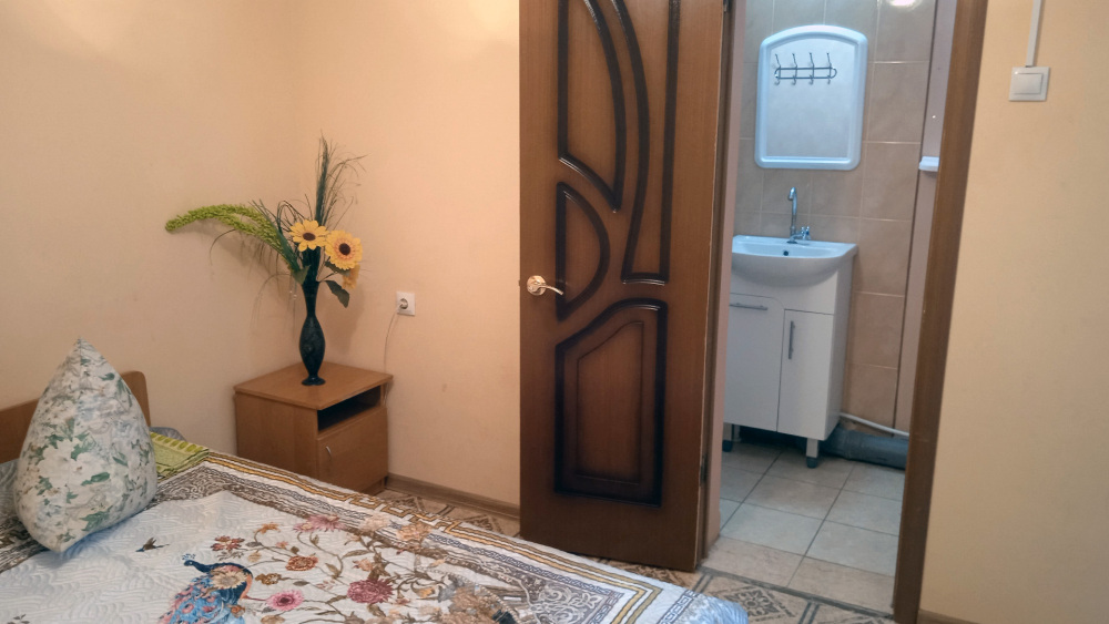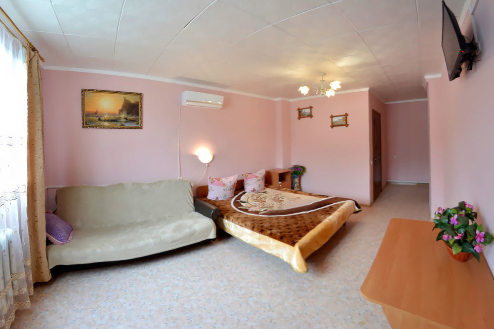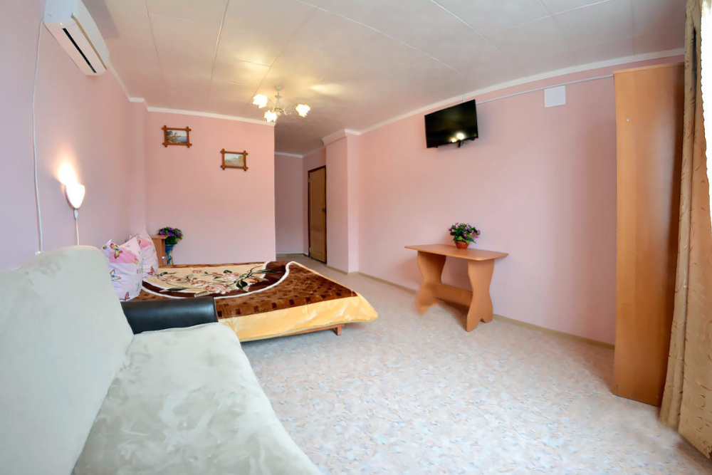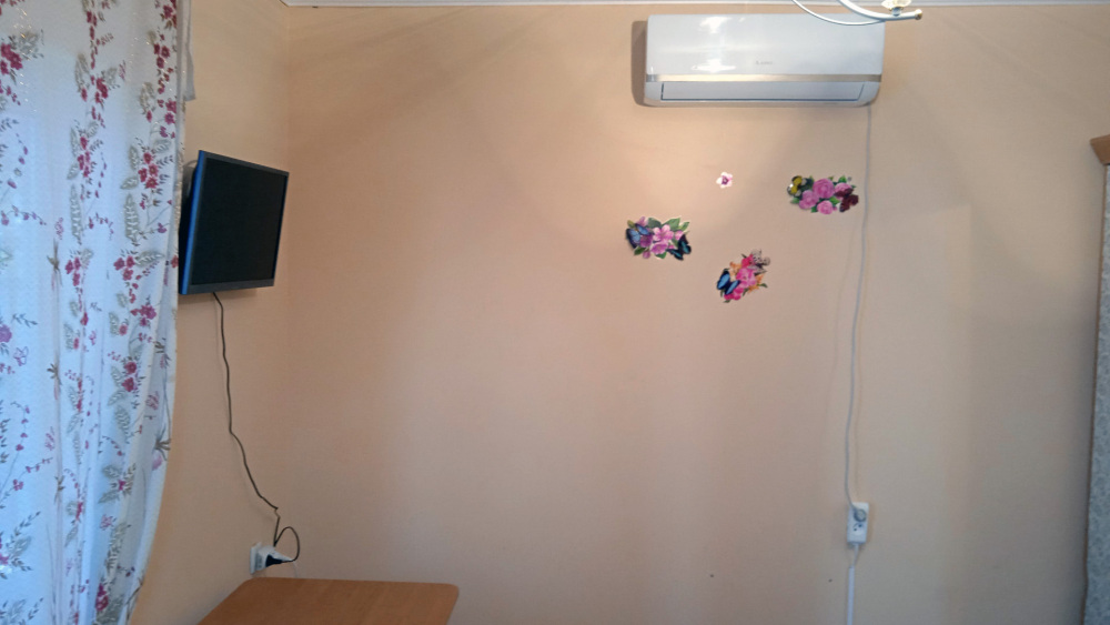 Рядом кухня. Два телевизора. Можно поставить дополнительно кровать, будет на четверых.