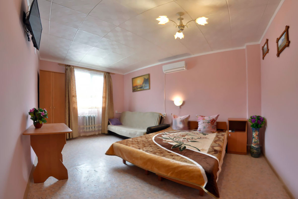 К размещению гостей предлагаются чистые, уютные комнаты. Необходимая мебель, телевизор, вентилятор или кондиционер. Стиральная машинка общего пользования. Несколько общих душевых и туалетов на территории.