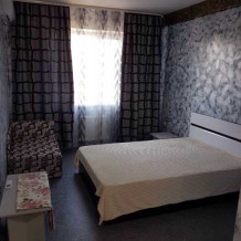 Для отдыха гостей предлагаются номера на 2-4 человека, однокомнатные и двухкомнатные. Все номера с современной отделкой и оснащением, оформлены со вкусом, новая мебель, кондиционеры, телевидение, беспроводной интернет, санузел с душем в каждом номере. На третьем этаже имеется огромная видовая терраса площадью 100 кв м с видом на озеро и море.