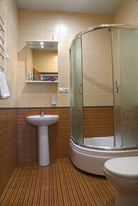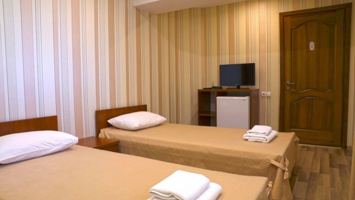В номере есть холодильник, телевизор, wi-fi, фен, полотенца, стол, тумбочки, шкаф-гардероб. Санузел совмещенный с душевой кабинкой.