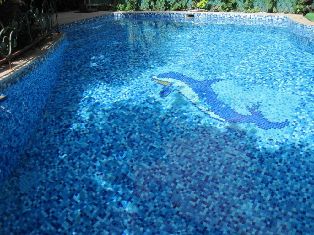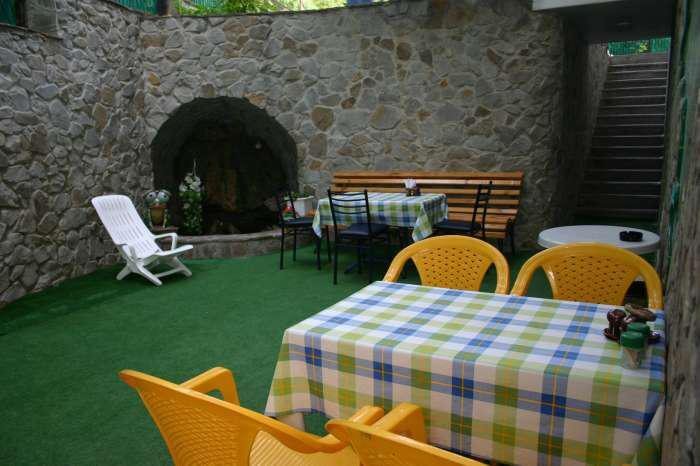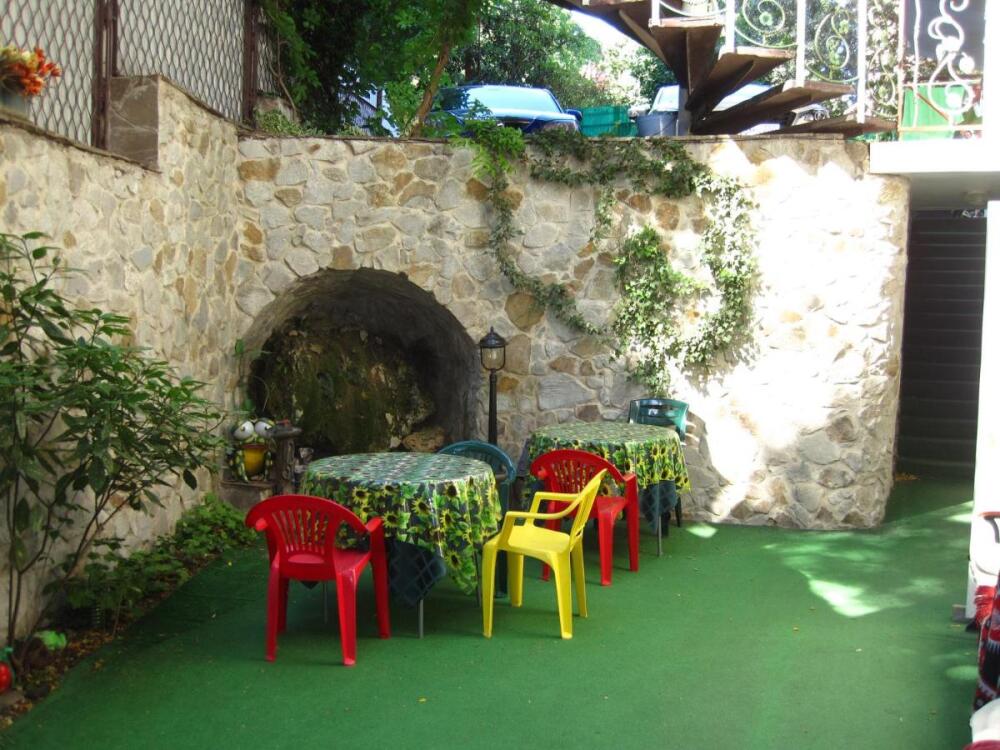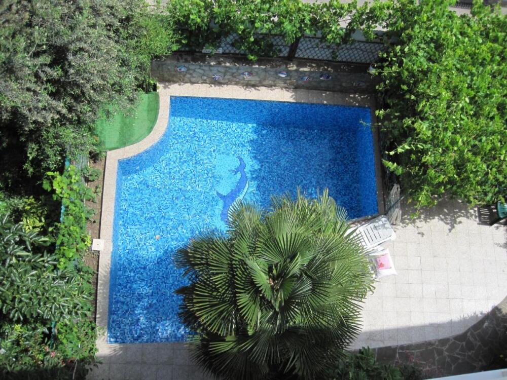 Территория виллы огорожена и охраняется. На зелёной красивой территории виллы есть открытый бассейн, охраняемая стоянка на 8 автомашин, площадка для отдыха с гротом.