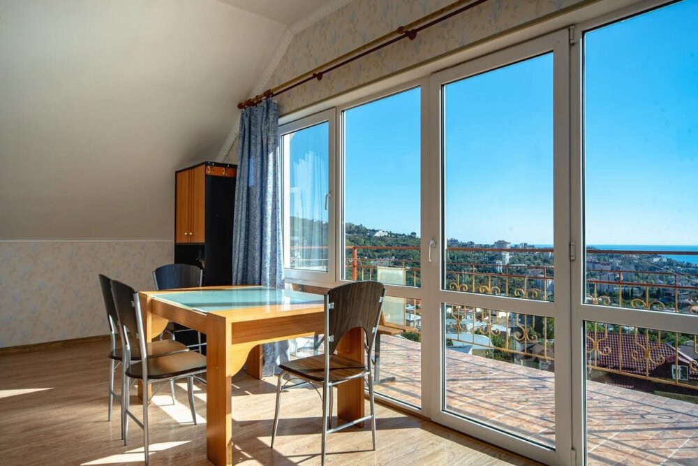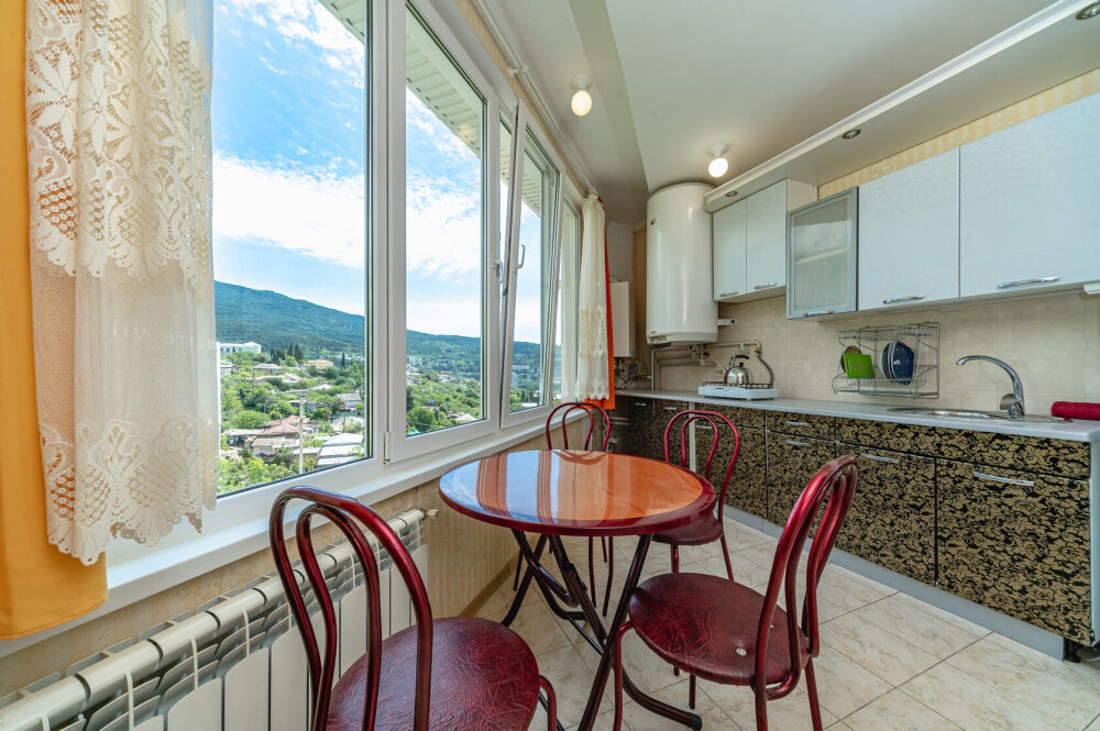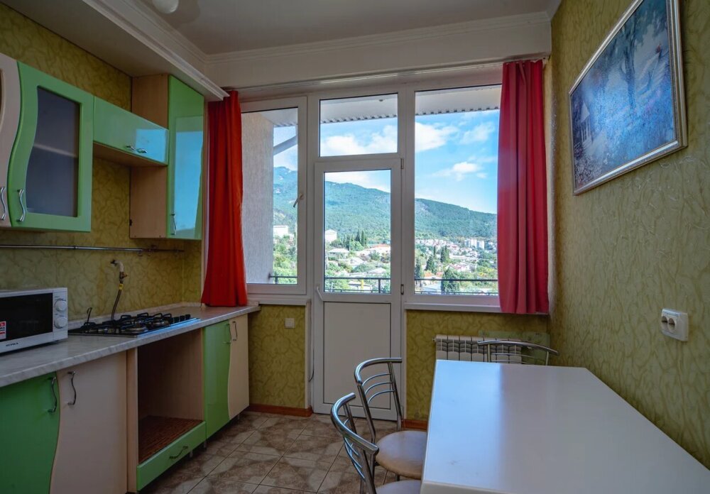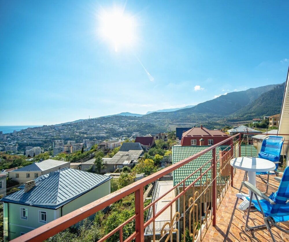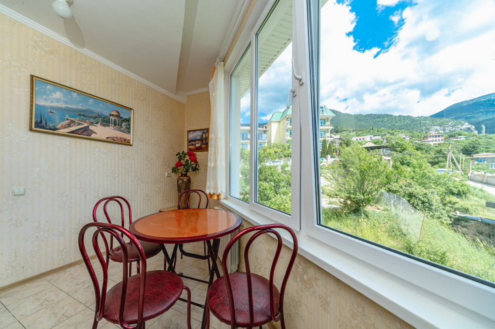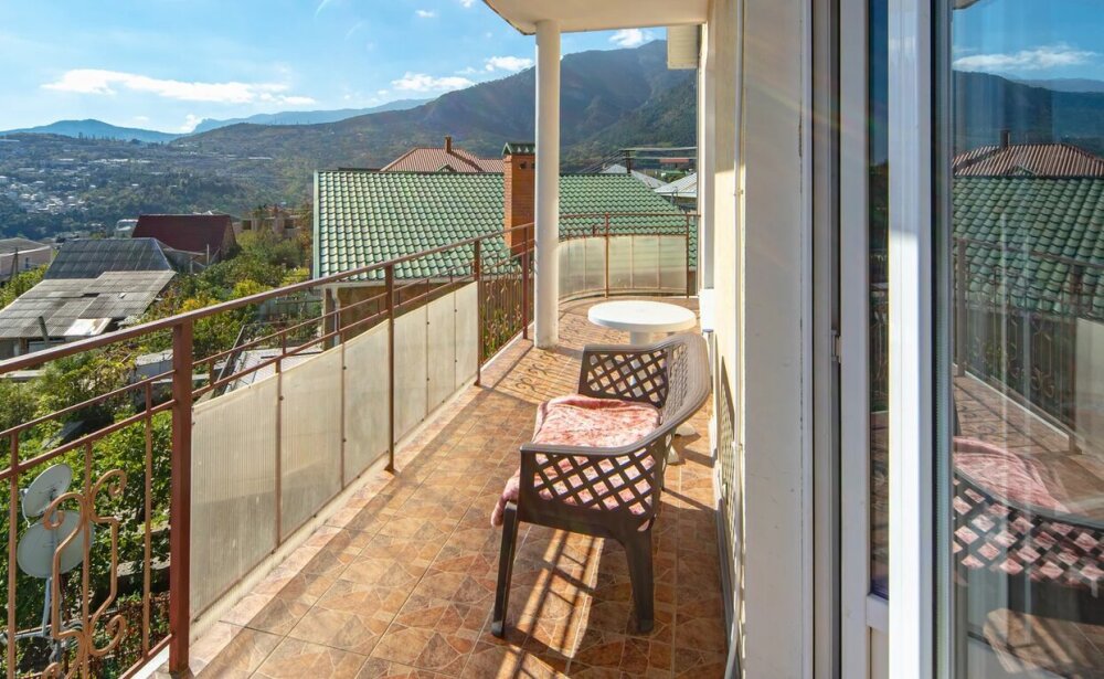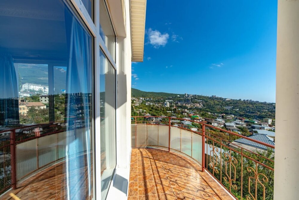 Балкон, Из окон открывается вид на море, Ялту и горы.