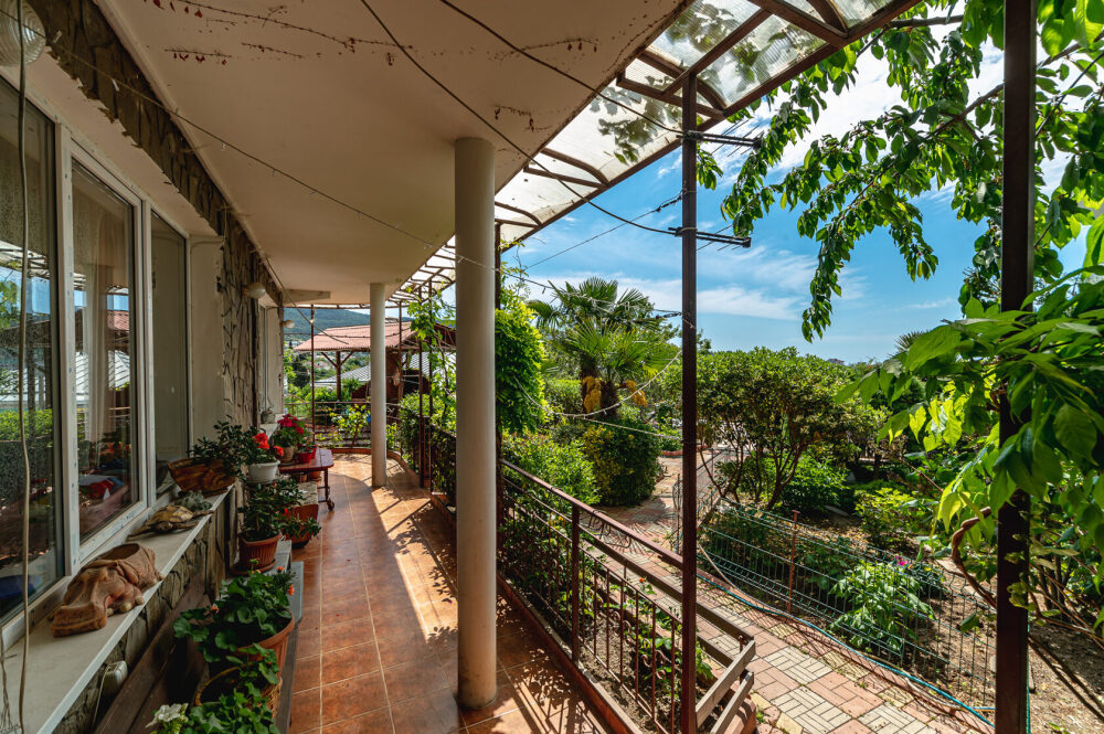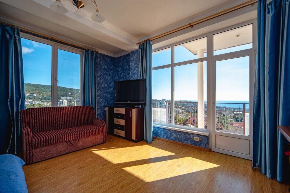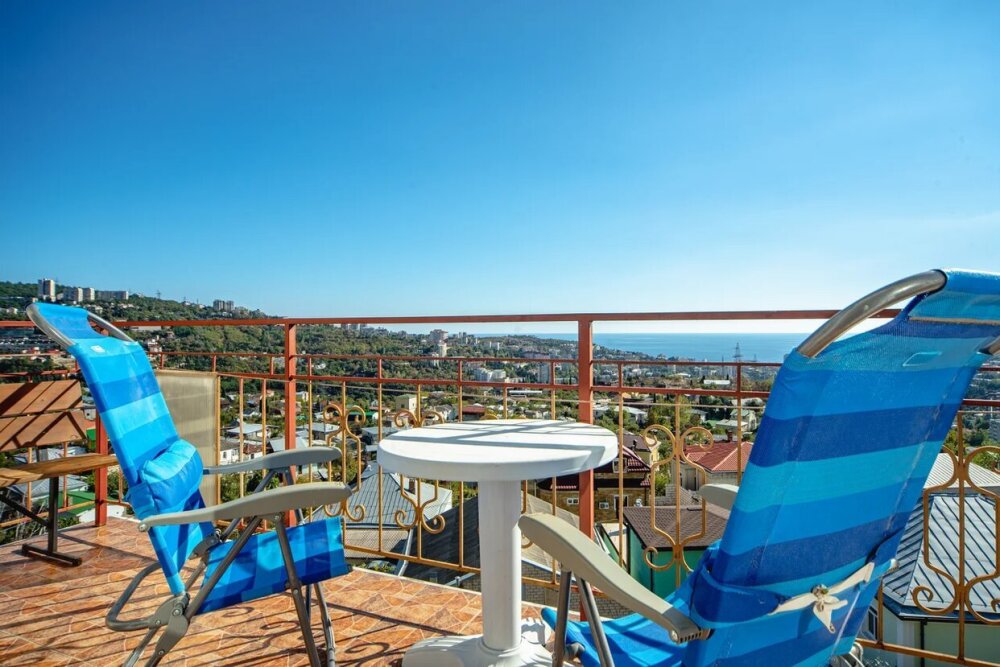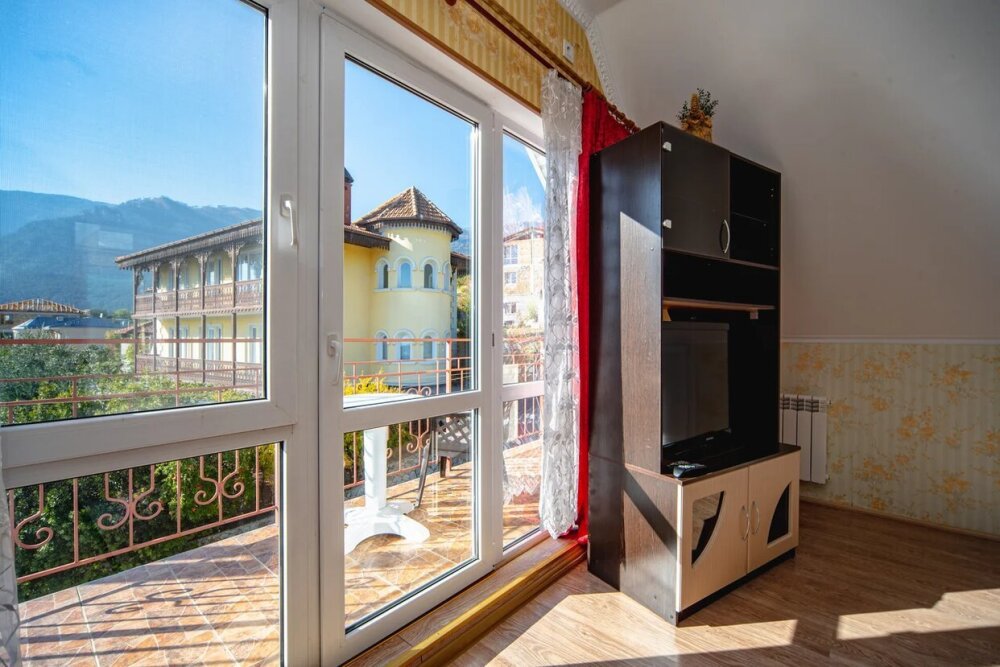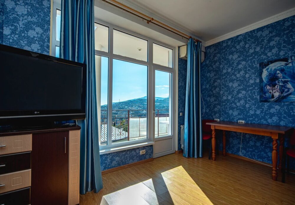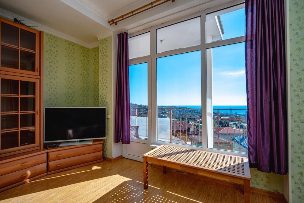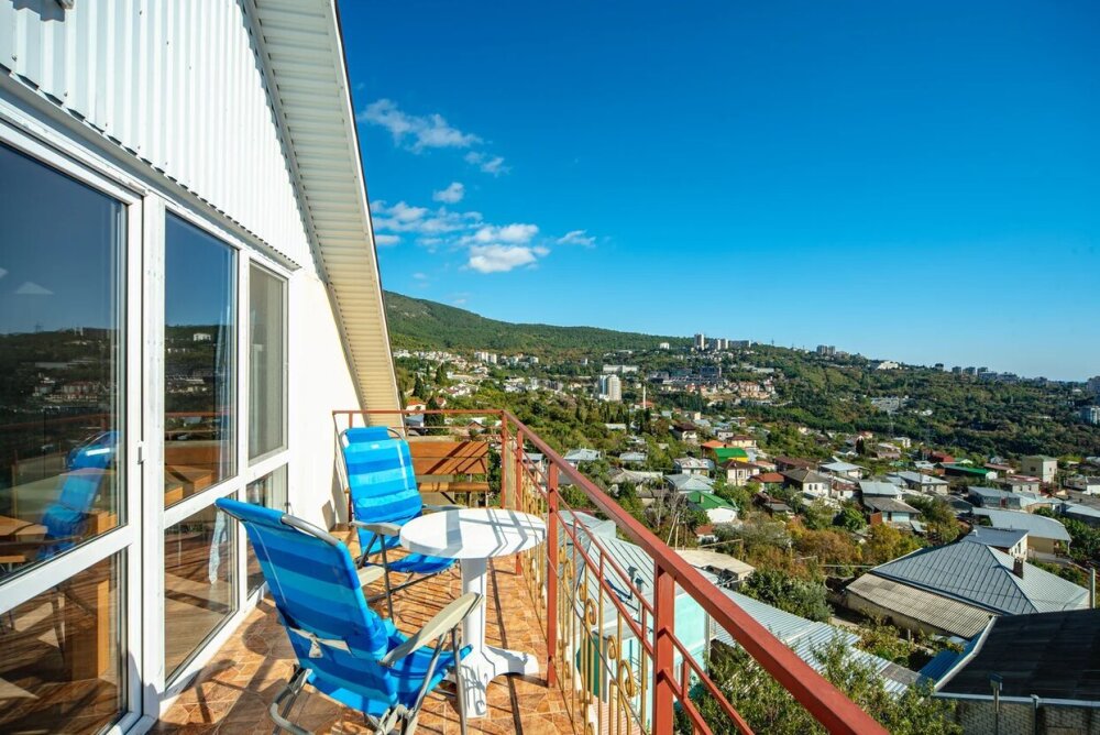 Балкон, Из окон открывается вид на море, Ялту и горы.