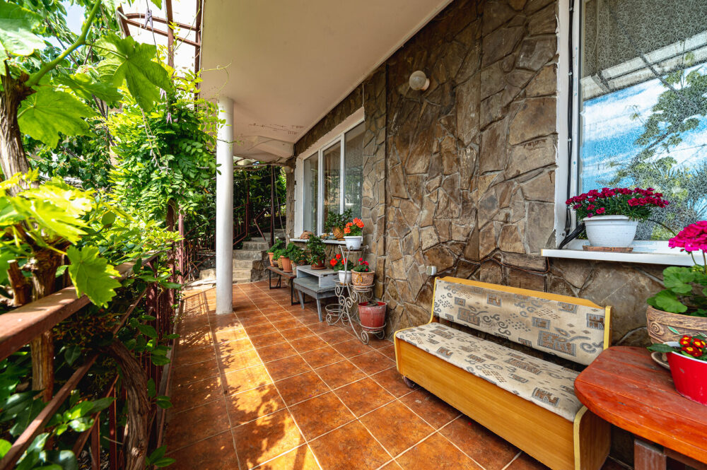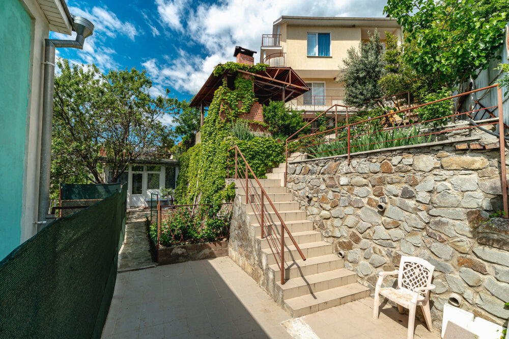Здесь район с самым чистым в Ялте воздухом, легко путешествовать (на машине 3 минуты до трассы, минуя пробки в городе; своим ходом остановка 300 м, автовокзал 10 минут пешком), несколько продуктовых магазинов рядом, овощной рынок 1,5 км/пляжи набережная 2,8 км, со всех окон и балконов дома открывается потрясающий вид на природу Южного берега Крыма - море и горы.