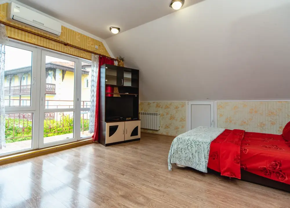 1 комната + кухня-веранда + собственная территория со столиком (огорожена) + общая территория с основным домом.