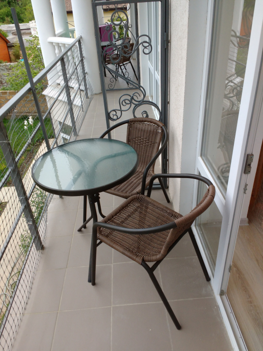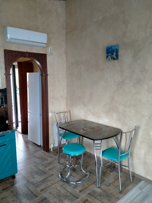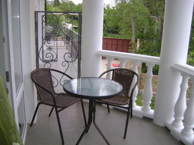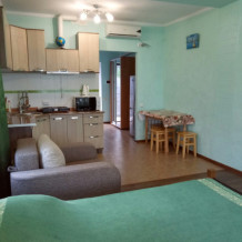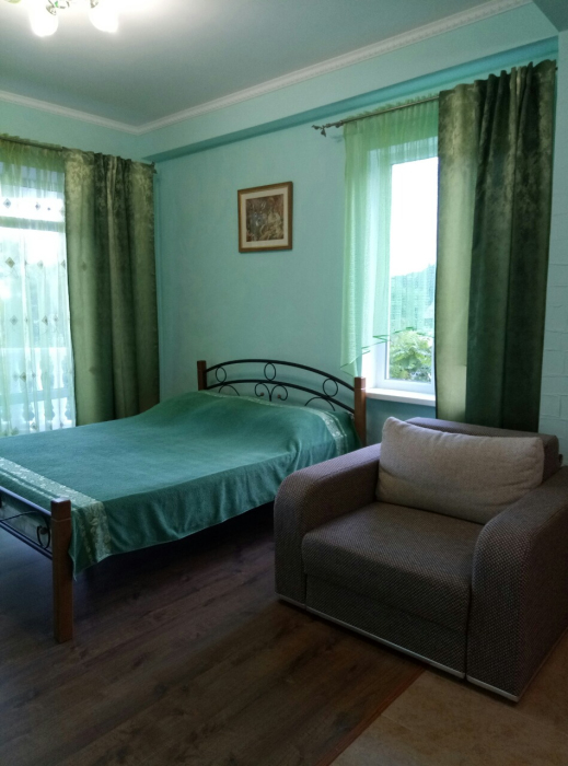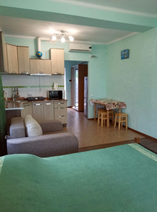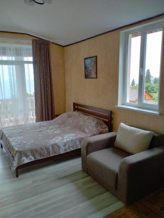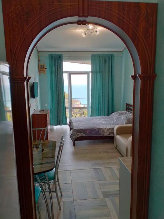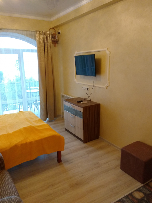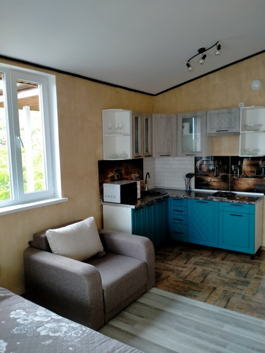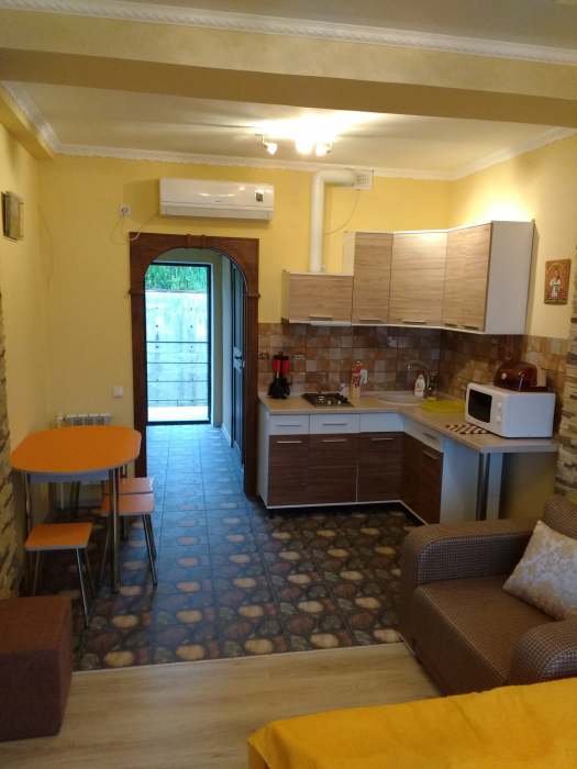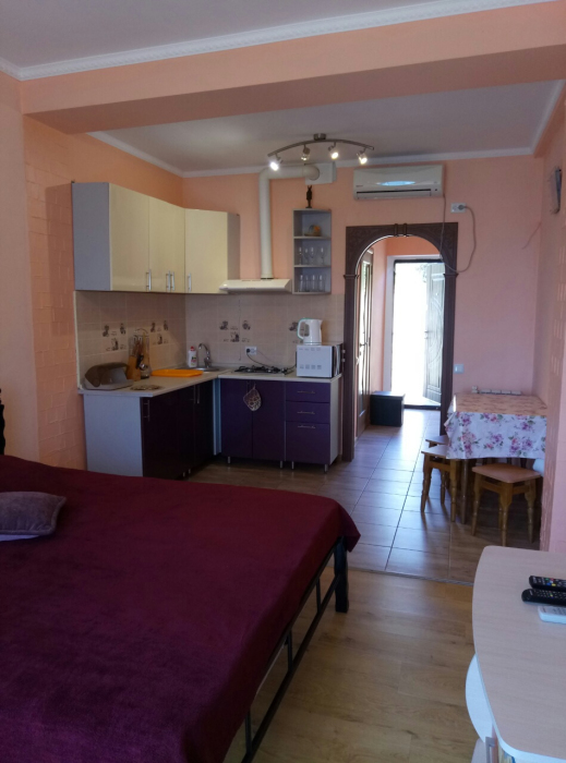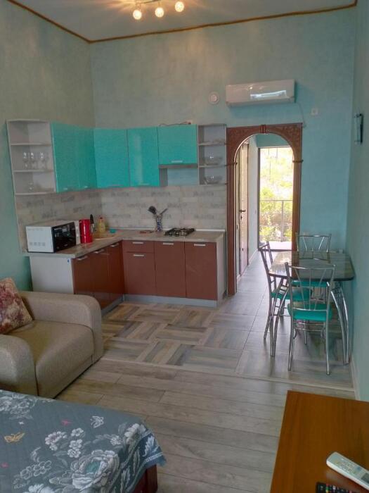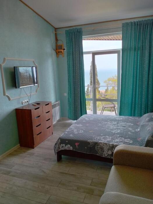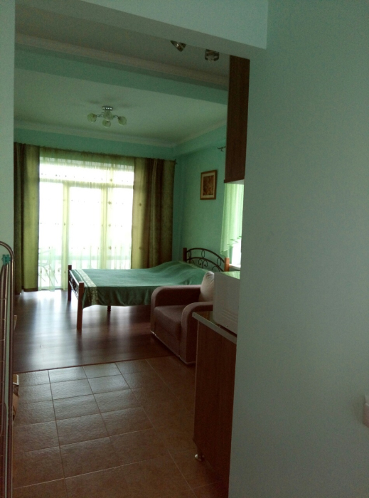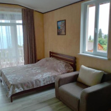 Номера оснащены всем необходимым для отдыха, большая двуспальная кровать и кресло-кровать, есть возможность поставить дополнительное место. ЖК телевизор со множеством каналов не даст заскучать вечером. Кухня в номере имеет газовую плиту, СВЧ, набор посуды, что позволяет готовить изысканные блюда из крымских овощей, фруктов и свежевыловленных морепродуктов.