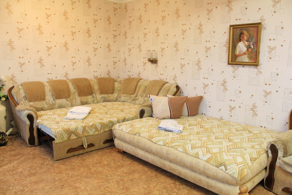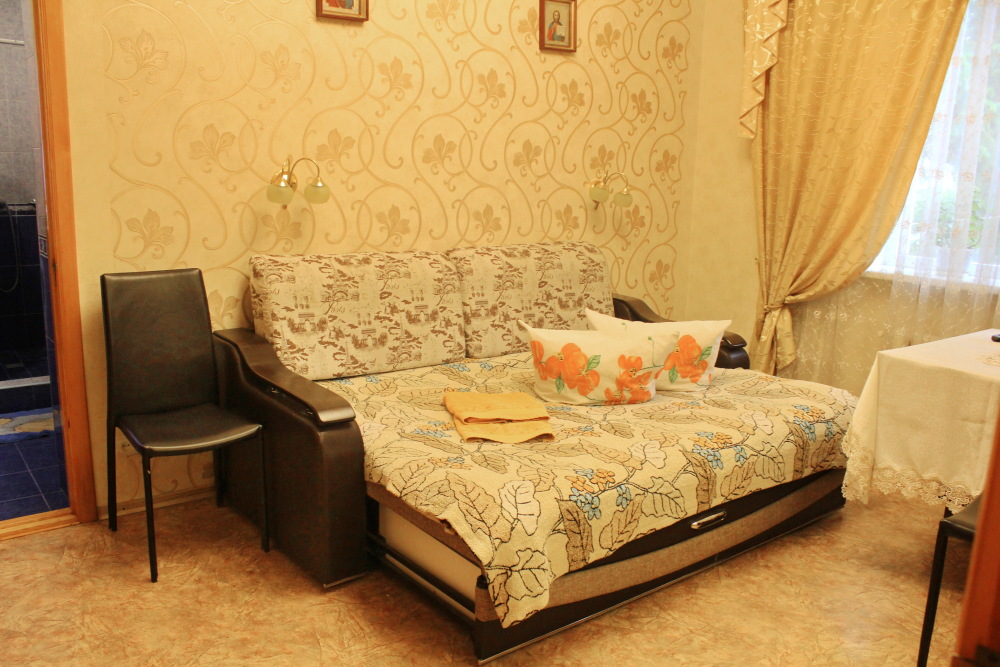 Отдельный номер в частном доме с видом на сад. В комнате большой двухспальный диван, отдельный свой санузел, кондиционер, телевизор, Wi-Fi. Дополнительное место - кровать-раскладушка.