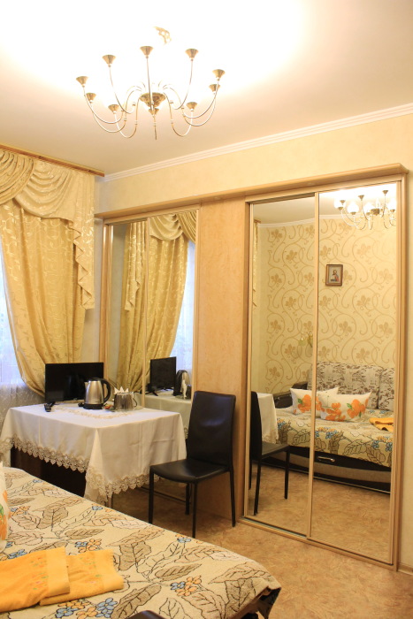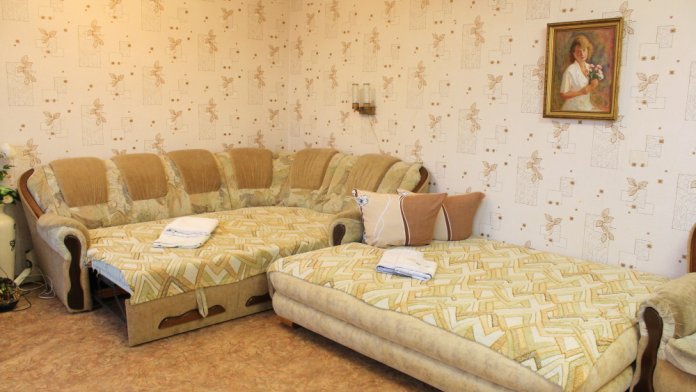Отдельная комната в частном доме с видом на сад. В комнате большая двухспальная кровать, двуспальный диван, кондиционер, телевизор, Wi-Fi. Возможно размещение доп. мест. Санузел и ванная комната находятся на этаже. Дополнительное место - кровать-раскладушка.
