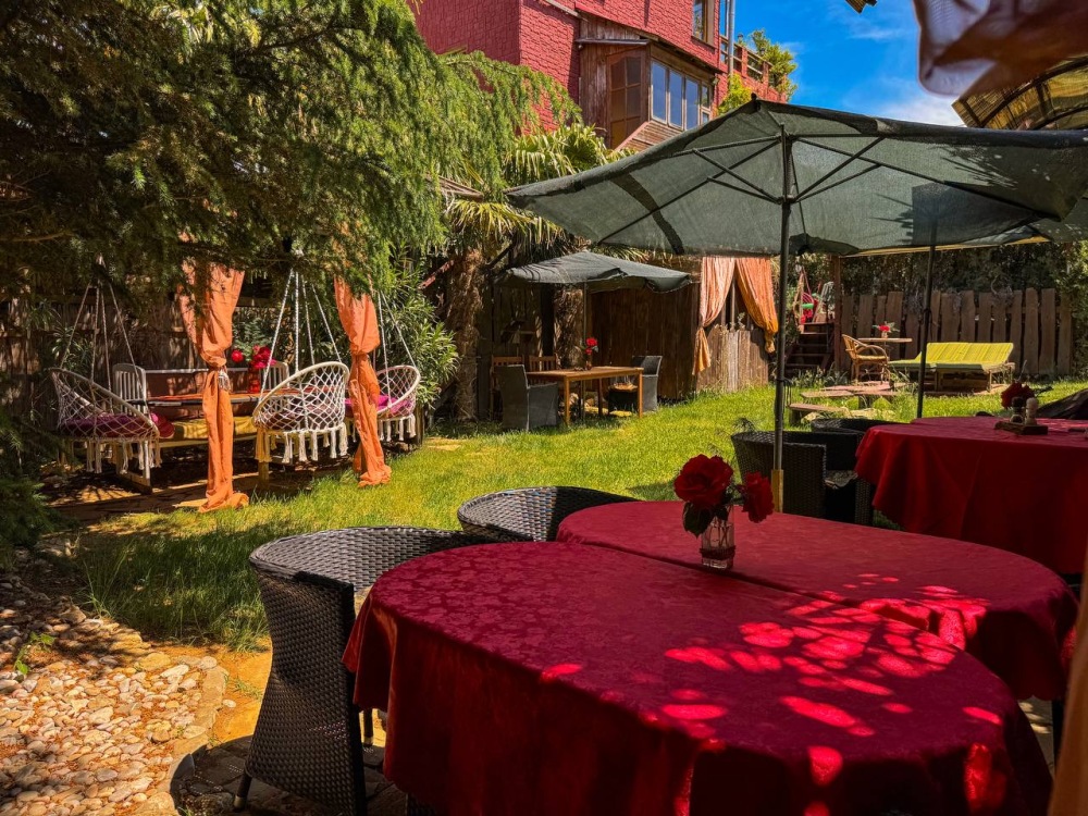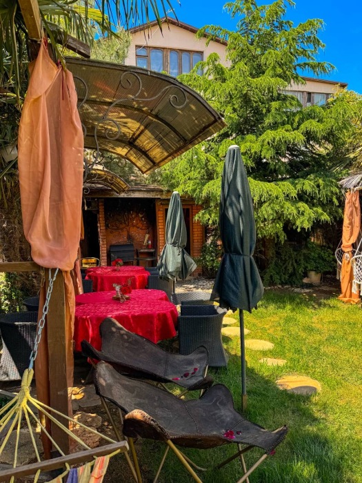 Вас ожидают уютные гамаки на деревянных верандах, травяной чай из самовара, завтраки на зеленом газоне в окружении цветущих роз, старые фильмы на экране проектора,прогулки у моря.