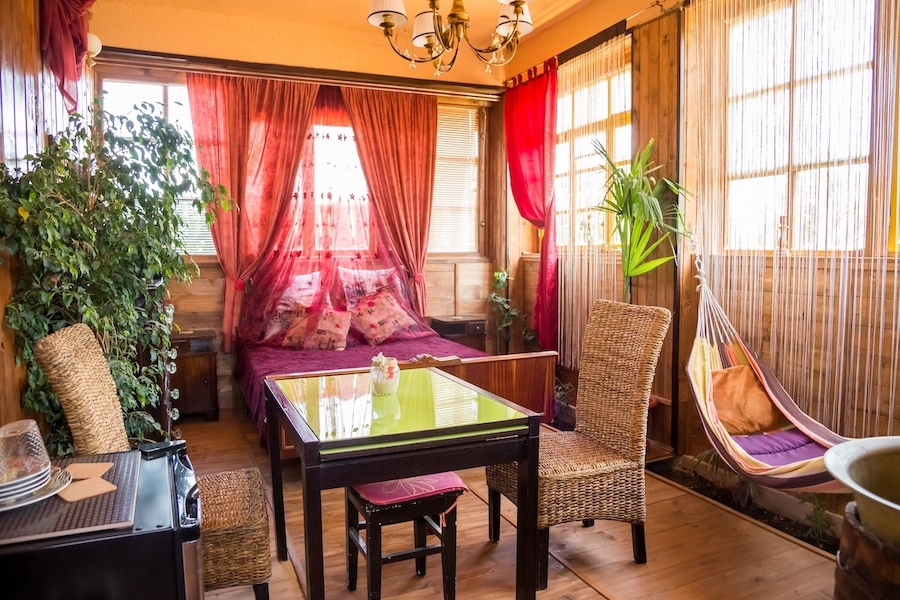 Мебель в ретро-стиле, гамак и пальмы прямо внутри комнаты!
