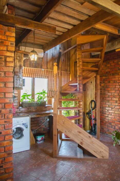 Двухэтажная уютная фазенда в экзотическом стиле с дровяным камином и зелёной зоной на крыше