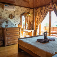 Романтическая, экзотическая дача с двумя спальнями, гидромассажной ванной, камином и русской баней внутри.