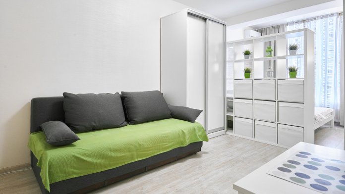 Современная, подобная мебель, двуспальная кровать, диван, шкаф купе, встроенная кухня.