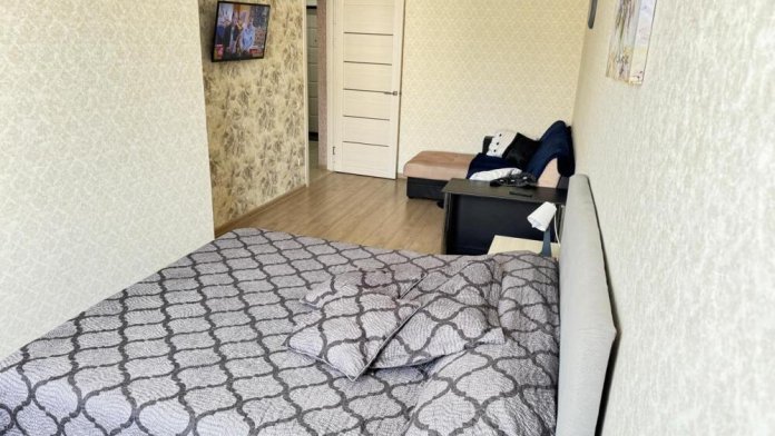 Двуспальная кровать с новым ортопедическим матрацем, Полутороспальный диван на котором возможно комфортно разместиться и 2 детей, , также есть еврораскладушка, плазменный ТВ, кабельное телевидение, интернет wi-fi, встроенная кухня, полностью оборудованная всем для комфортного проживания, микроволновка, АГВ, кондиционер, стиральная автомат и прочее.