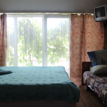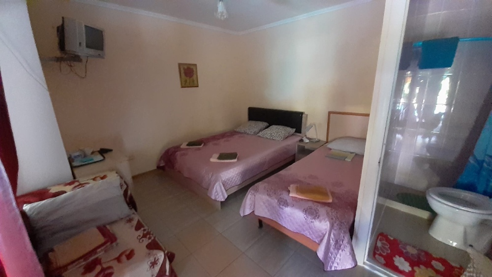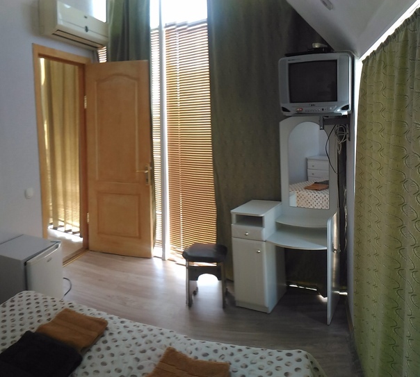 Мы предлагаем Вам комфортабельные 2,3,4-местные номера со всеми удобствами (туалет, душ, телевизор) в центральном районе поселка с расстоянием до моря 400 м по тенистой кипарисовой аллее.