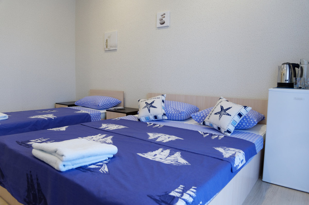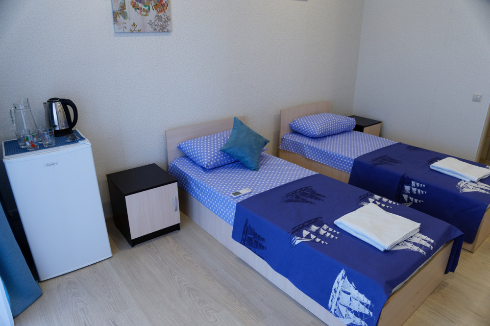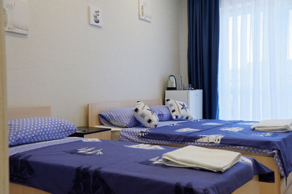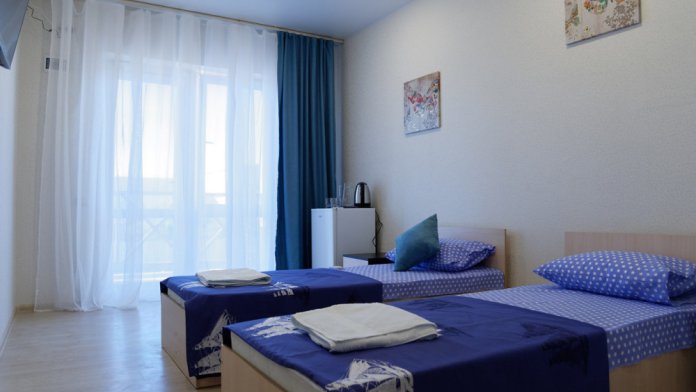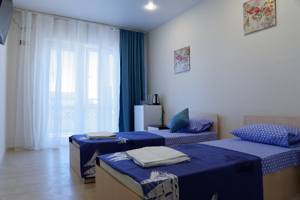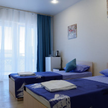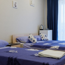 В номере могут быть раздельные кровати, либо 1 двуспальная и 1 односпальная. Возможно 2-местное размещение. Дополнительное место - раскладушка.