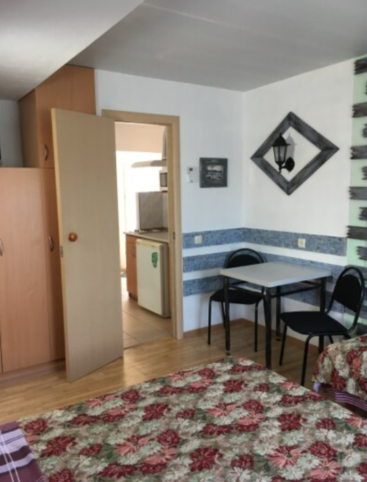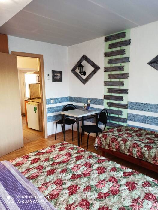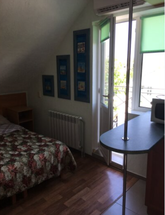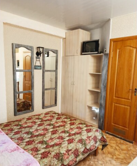 Сдаются 2,3-местные номера. Частный сектор. Отдельный вход в каждый номер. Дворики для отдыха (мангал, летняя кухня, столики). В номере: мини кухня (холодильник, электрочайник, микроволновая печь, мойка, посуда); есть номера со своей эл.плитой, телевизор; WI-FI; ванная комната (умывальник, душ, туалет), горячая и холодная вода постоянно. Фен не предоставляется. Уборка номеров во время проживания гостей не производится. Полотенца меняются по требованию. Постельное белье меняется через 5-7 дней.