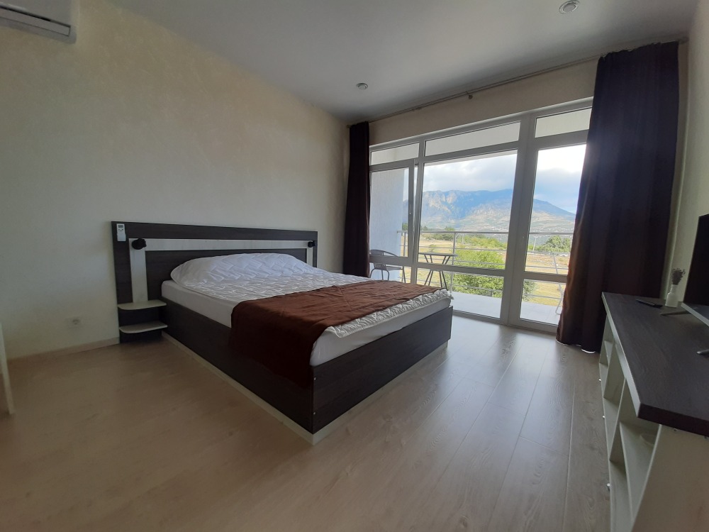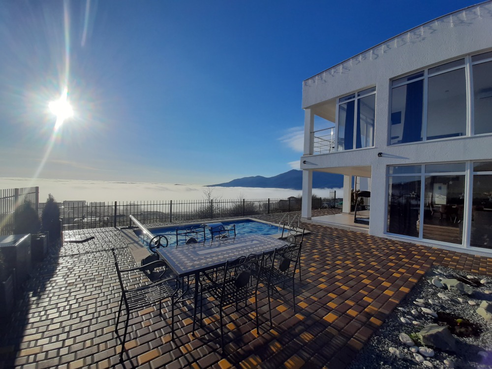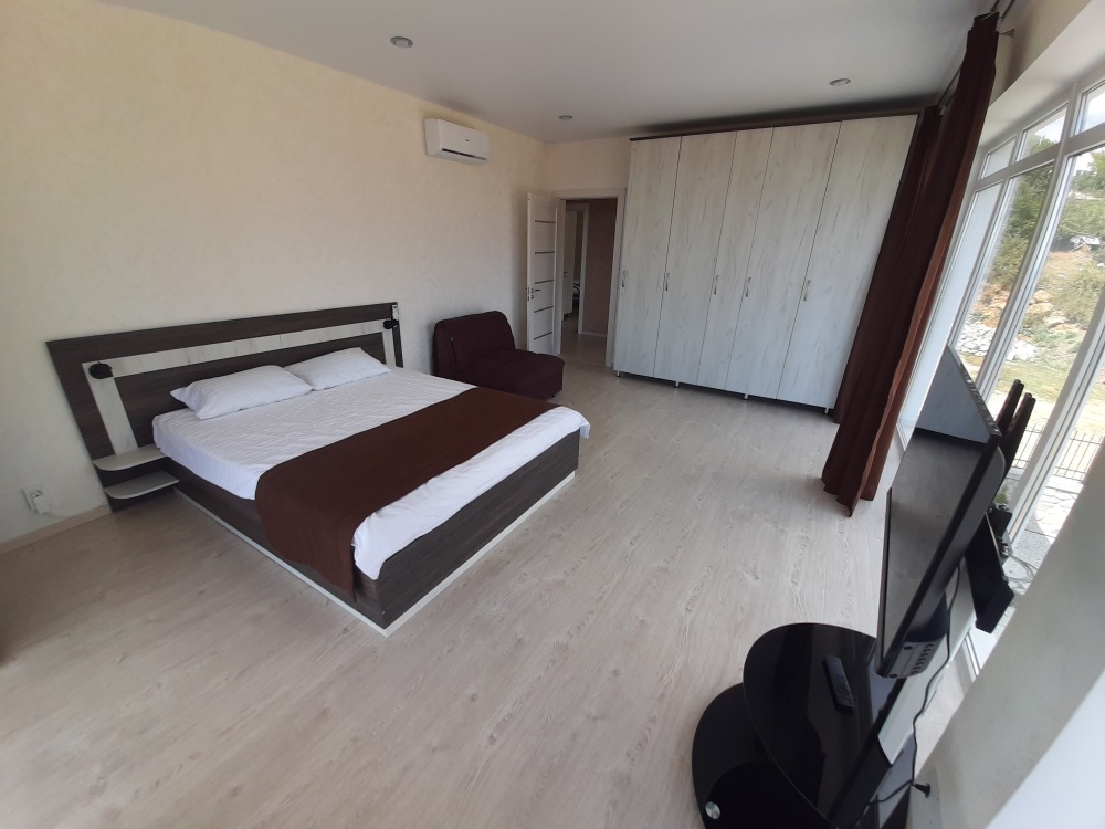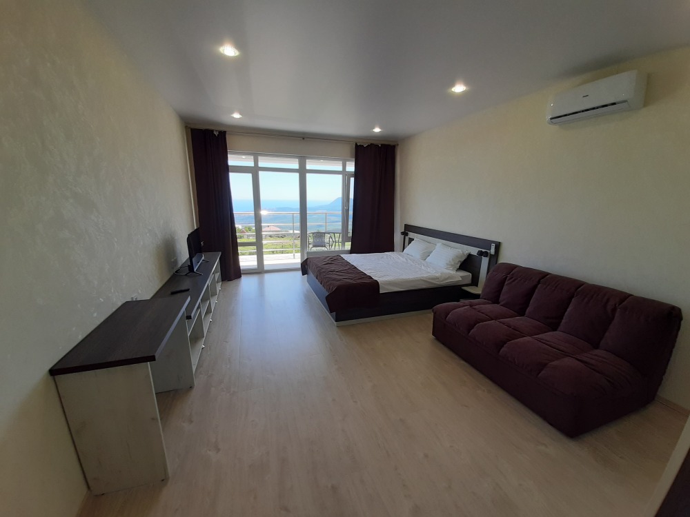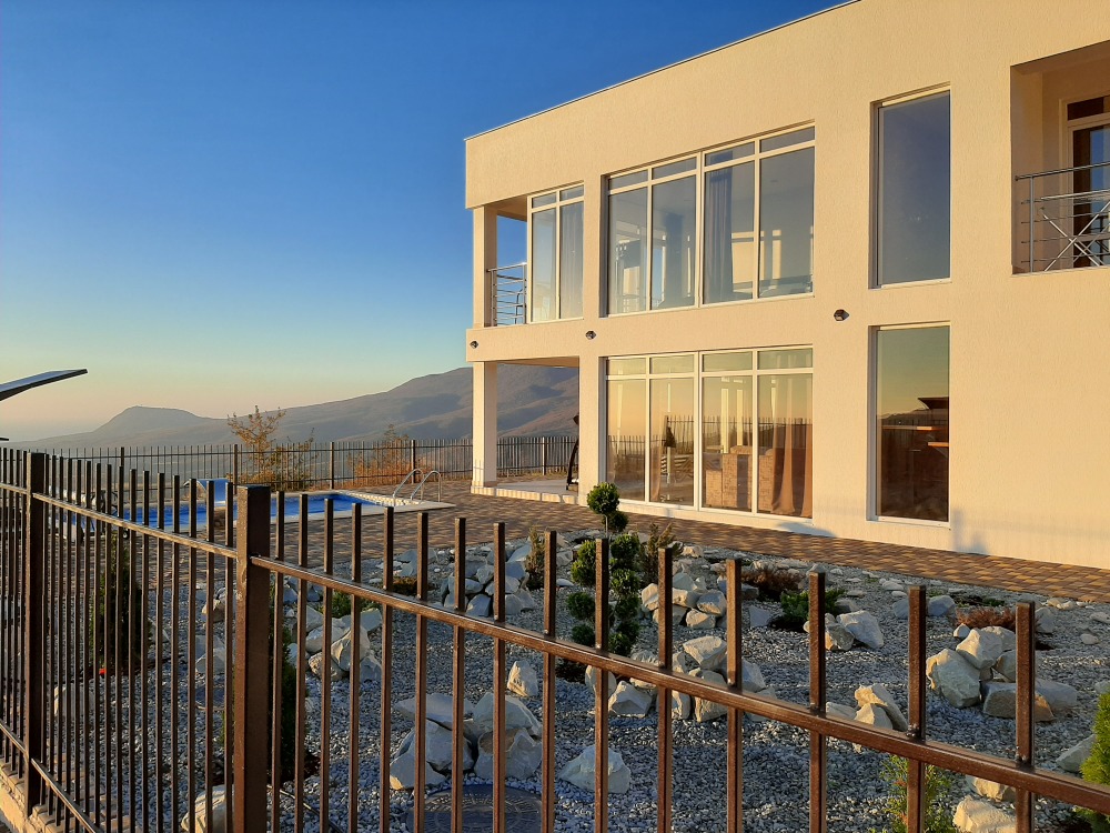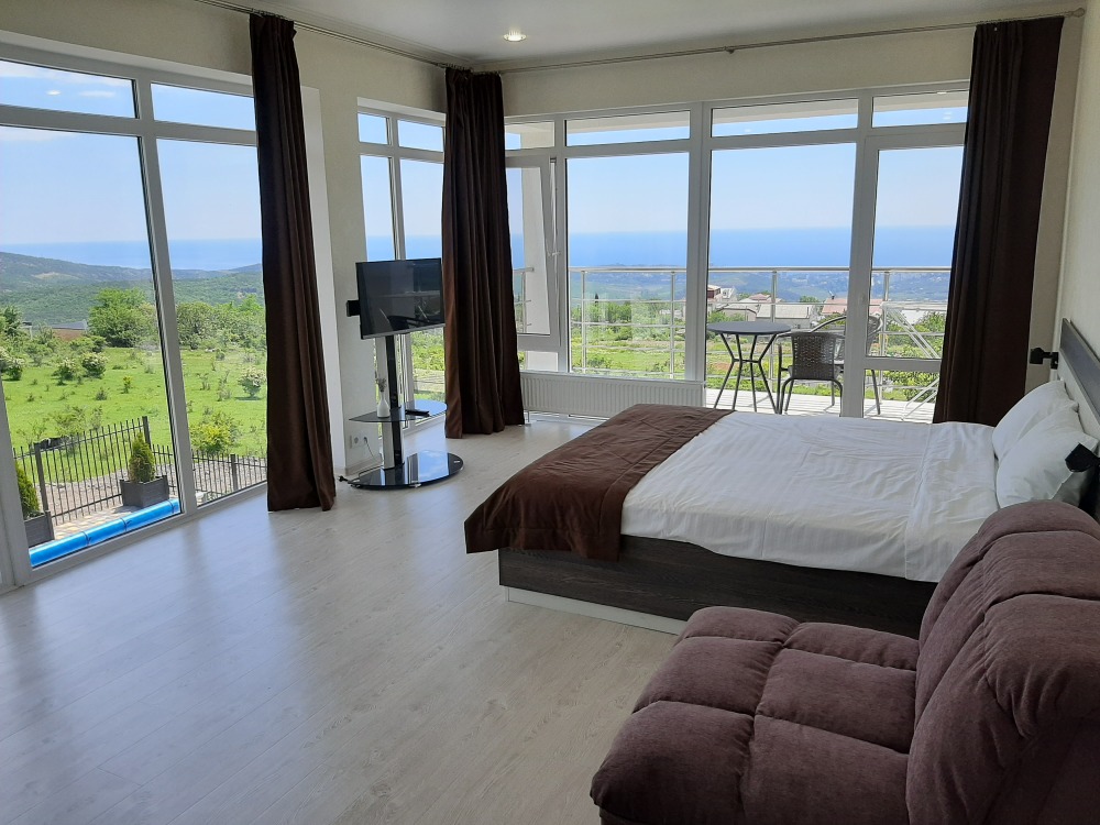 Все окна панорамные, потрясающий вид на море и горы. Своя территория, без соседей. Большая парковка для автомобилей. Мангал, шампуры, решётка. Wi-fi высокоскоростной на всей территории.