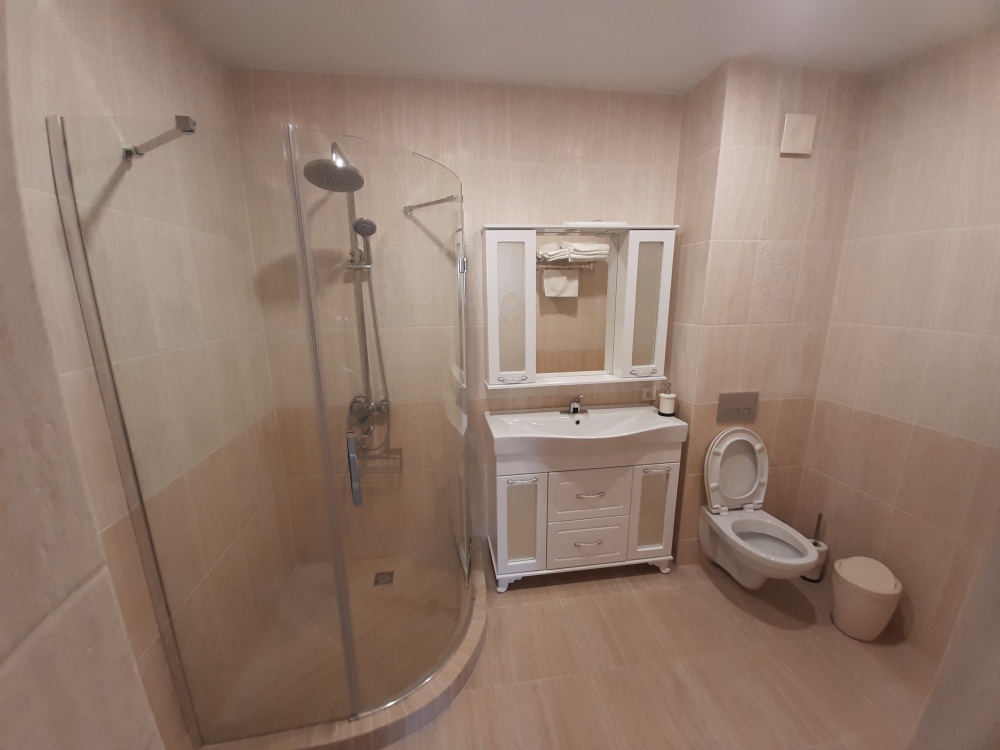 На 2 этаже: санузел с душем, 3 спальни с большими кроватями + диванчики, все с видовыми балконами.