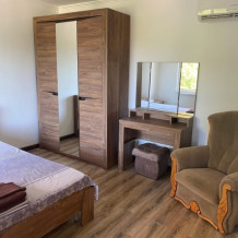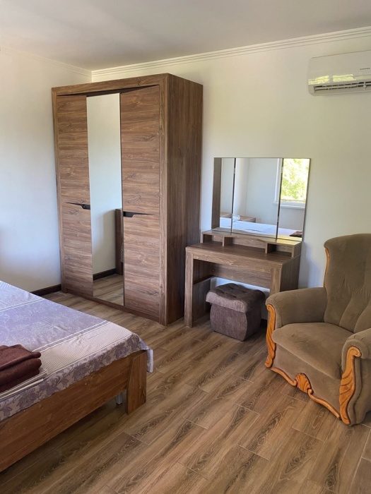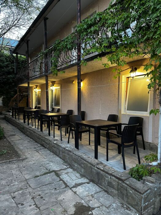 К услугам наших гостей уютные номера. Во дворе большое количество зелени, фонтан, теневые навесы, шезлонги, столики со стульями под навесами.