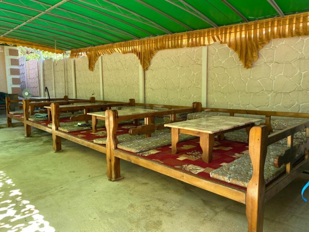На ухоженной и озелененной территории виллы к услугам гостей чайхана под навесом на открытом воздухе, парковка и детская площадка. Предварительно связавшись с администрацией виллы, возможна организация трансфера.