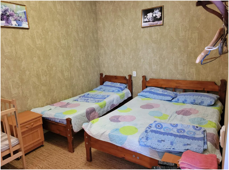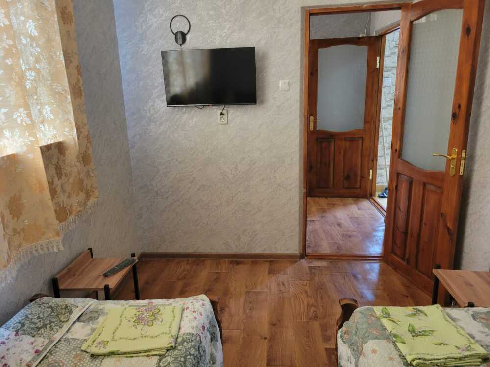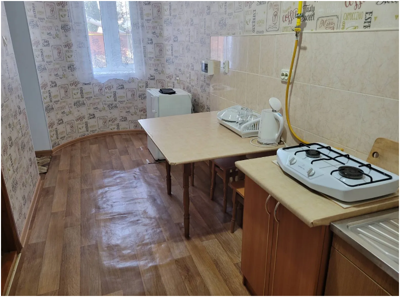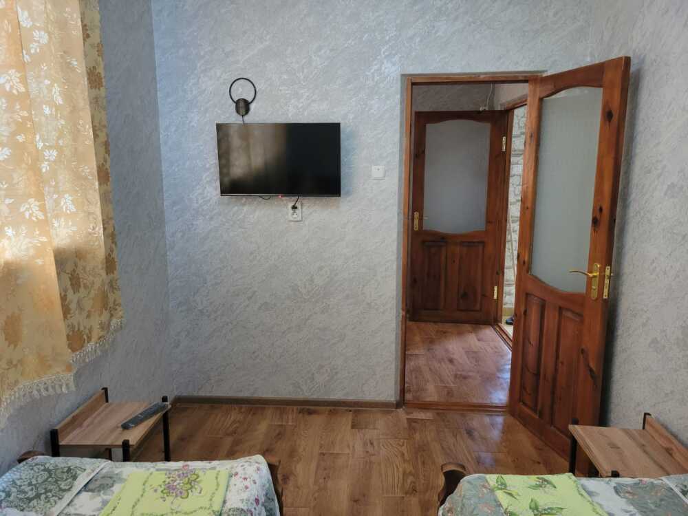 Двухкомнатный номер с кухней и со всеми удобствами в номере на третьем этаже. В номере есть все необходимое для комфортного отдыха, кондиционер, телевизоры, удобная деревянная мебель. Все принадлежности для самостоятельного приготовления пищи.