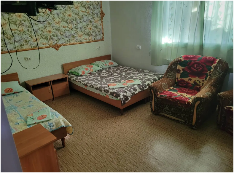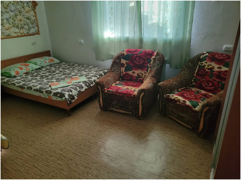 К услугам гостей уютные номера, вода холодная, горячая постоянно. Рядом с домом стоянка для машин, большая беседка, мангальная зона. Во дворе каркасный бассейн для детей. Территория озеленена, огорожена.