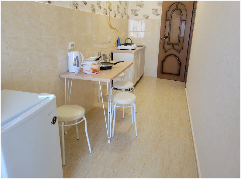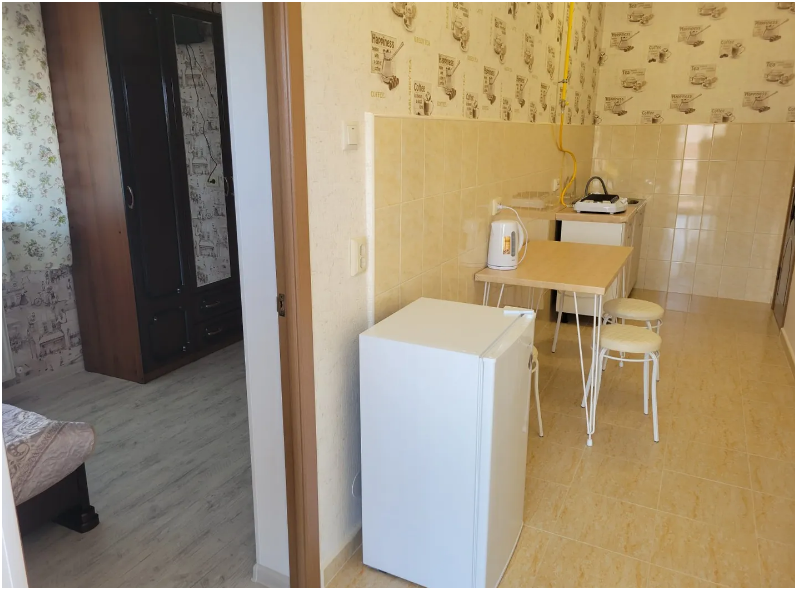 Однокомнатный номер с кухней и со всеми удобствами в номере на третьем этаже. В номере есть все необходимое для комфортного отдыха, кондиционер, удобная деревянная мебель. Все принадлежности для самостоятельного приготовления пищи.