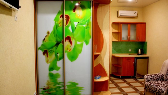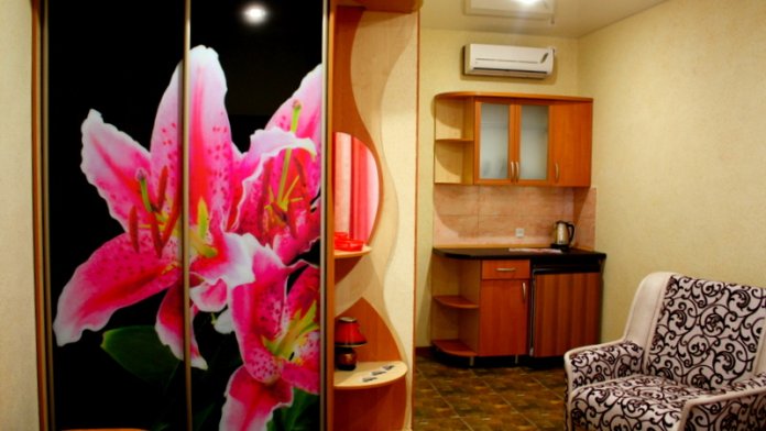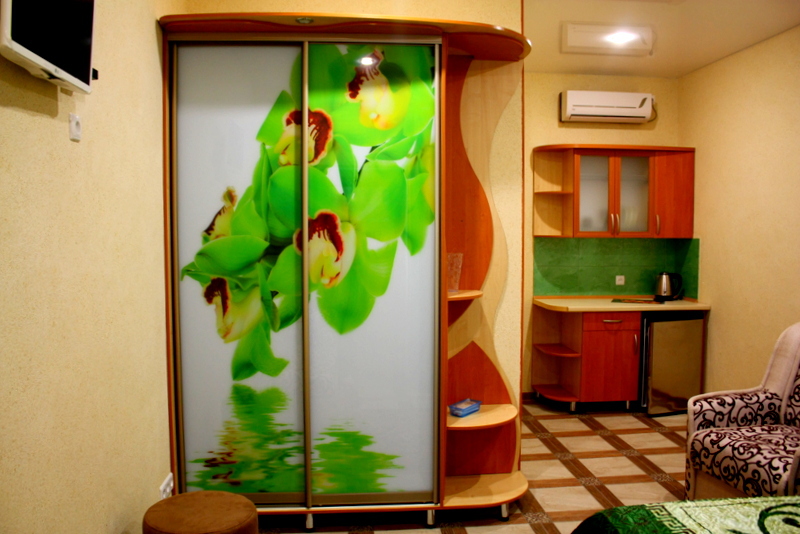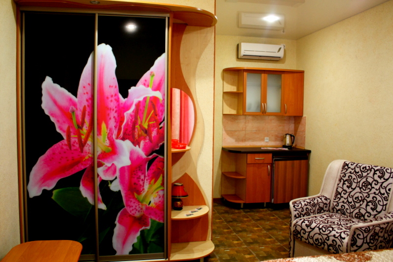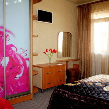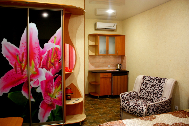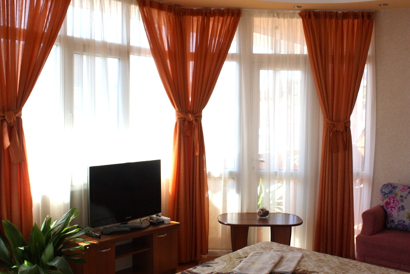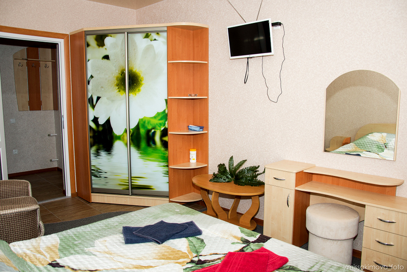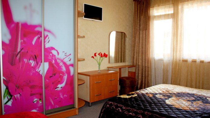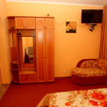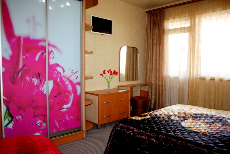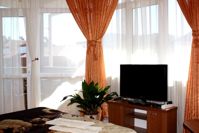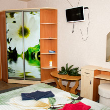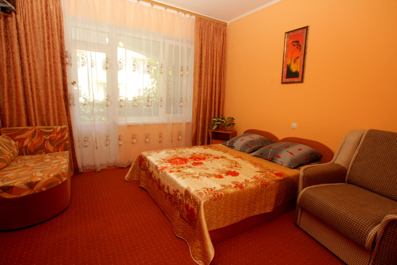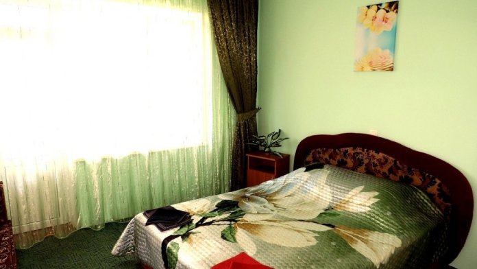 Номер выполнен по европейскому стандарту с индивидуальным, ярким дизайном и оборудован сплит-системой, санузлом, телевизором и удобной мягкой мебелью. Для удобства в номерах есть шкафы, прикроватные тумбочки и трюмо. С балконов номеров, оборудованных мебелью, можно любоваться чарующей горой Алчак и прекрасным видом зеленого двора нашей мини-гостиницы.