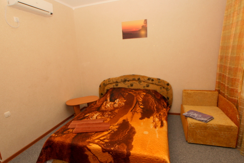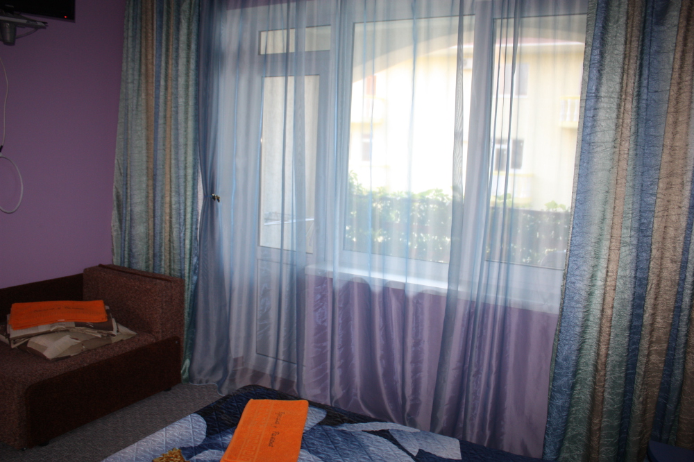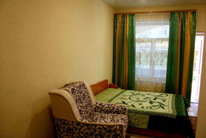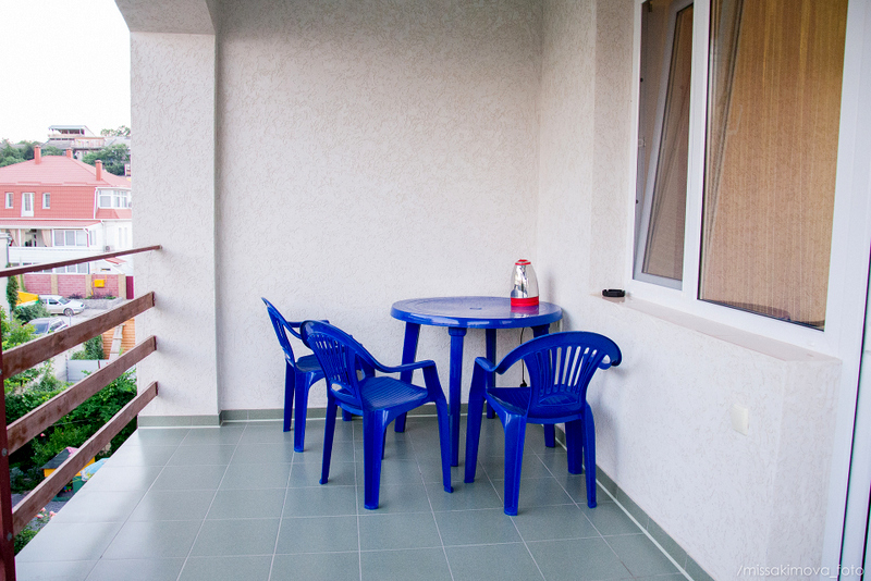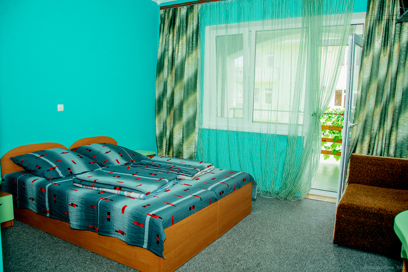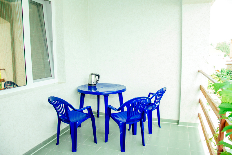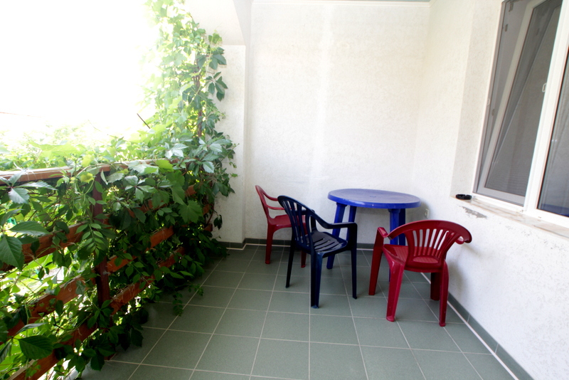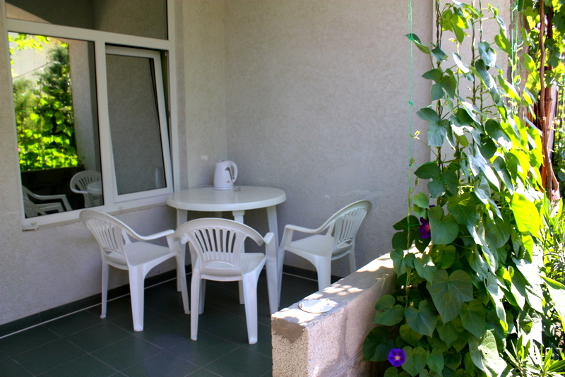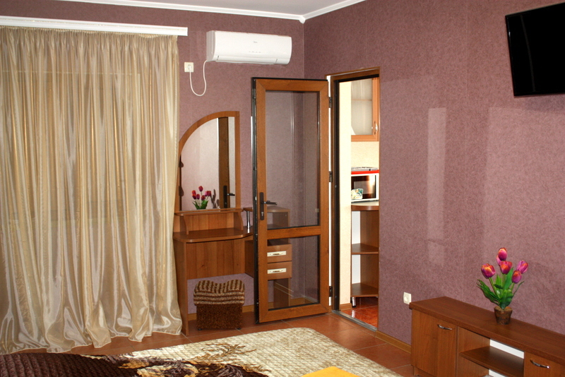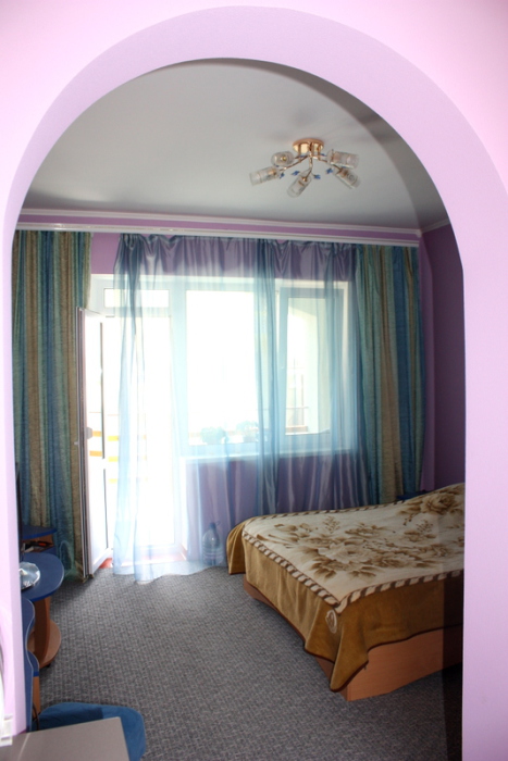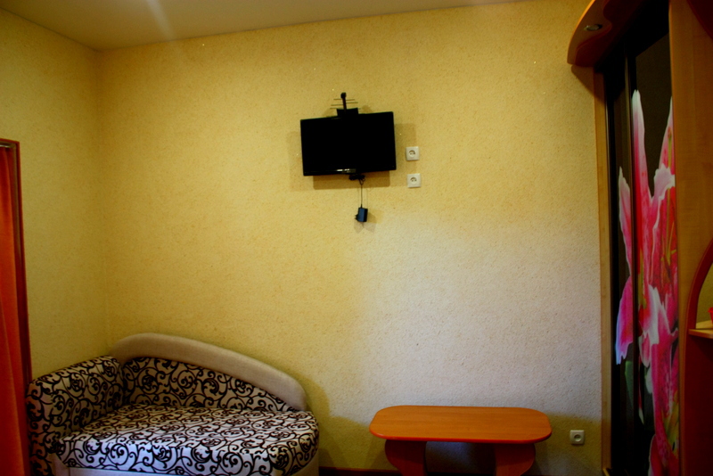Номер 2-местный с дополнительным местом (большой диван-книжка), расположен на четвертом этаже, имеет отдельный вход. В номере есть душ и санузел (горячая и холодная вода круглосуточно), есть телевизор LCD, кондиционер, холодильник, микроволновая печь, эл.чайник, посуда, сейф. Имеется балкон, где стоит летняя мебель для отдыха, сушилка для белья. Предоставляем постельное белье и полотенца.