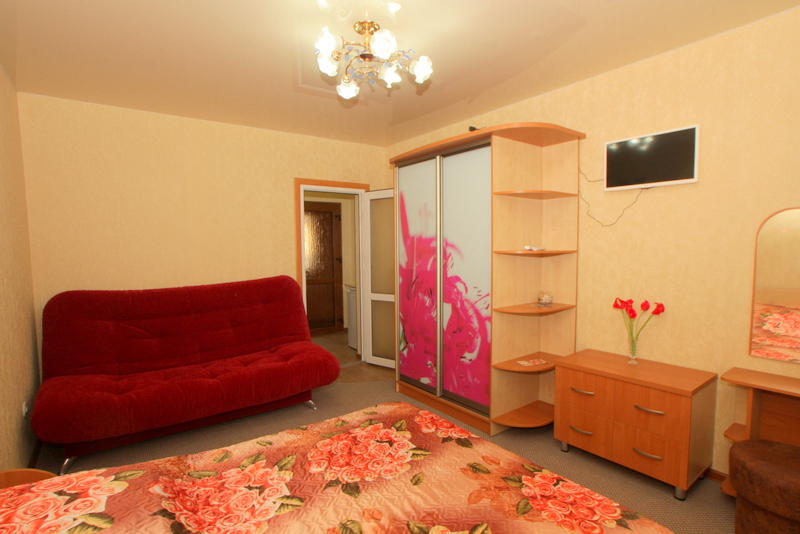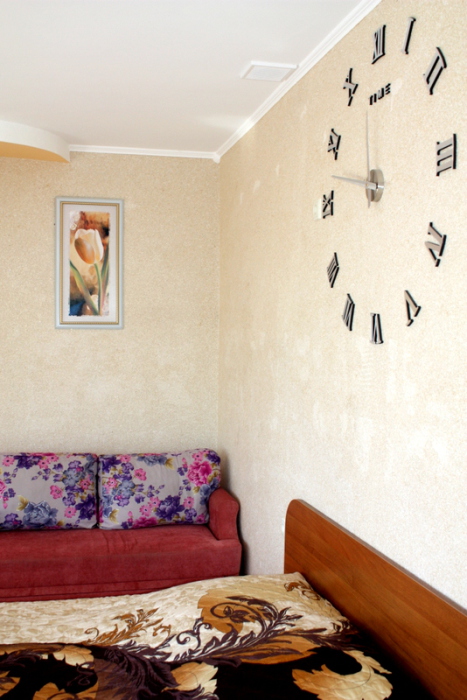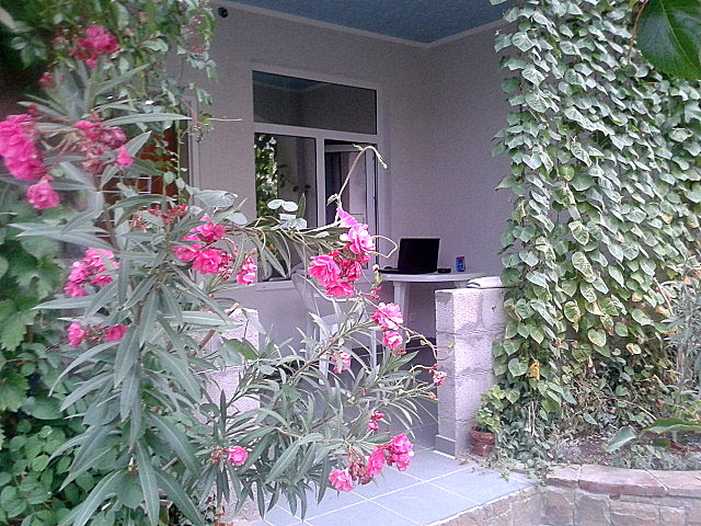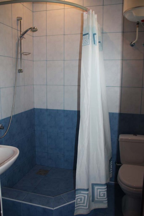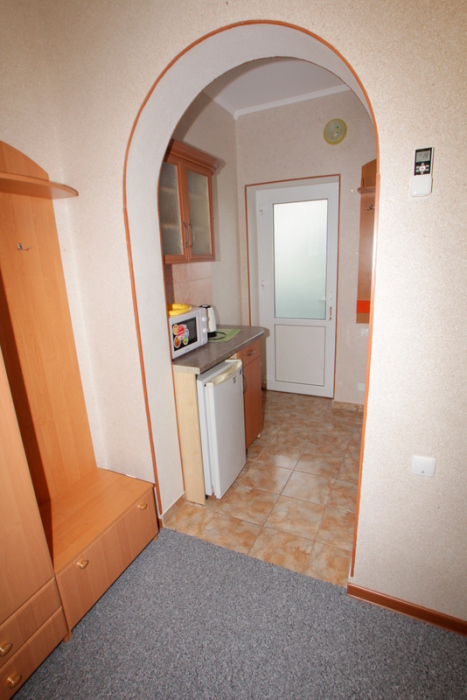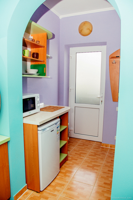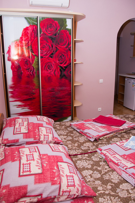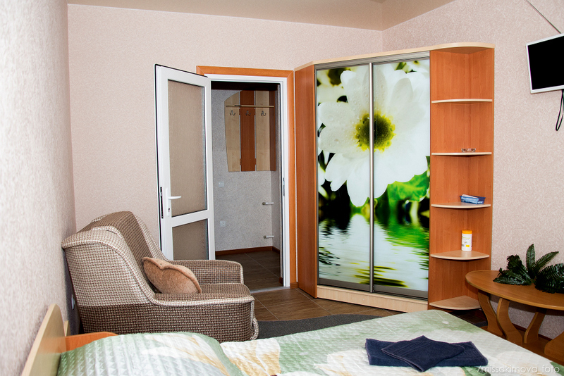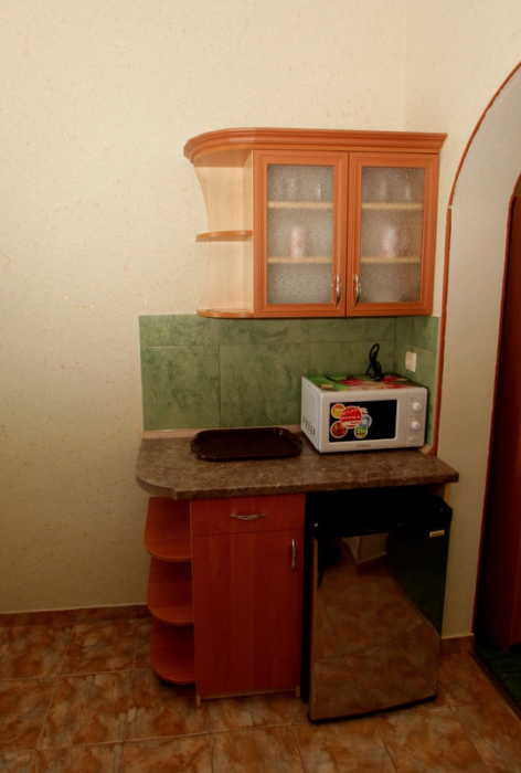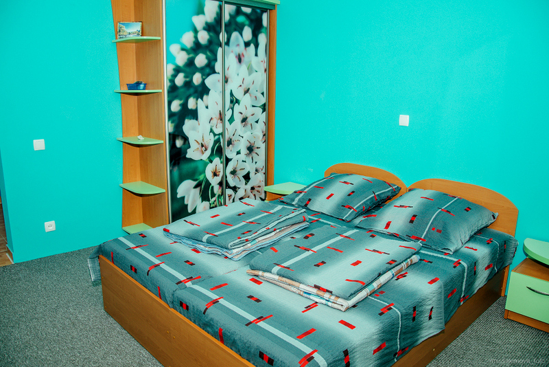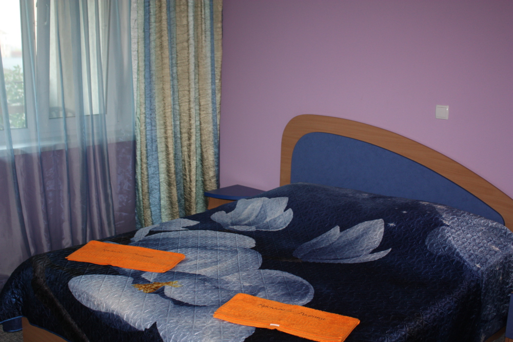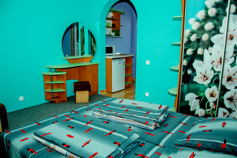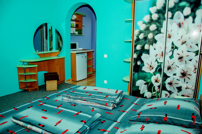 Номер 2-местный с дополнительным местом (большой диван-книжка), расположен на четвертом этаже, имеет отдельный вход. В номере есть душ и санузел (горячая и холодная вода круглосуточно), есть телевизор LCD, кондиционер, холодильник, микроволновая печь, эл.чайник, посуда, сейф. Имеется балкон, где стоит летняя мебель для отдыха, сушилка для белья. Предоставляем постельное белье и полотенца.
