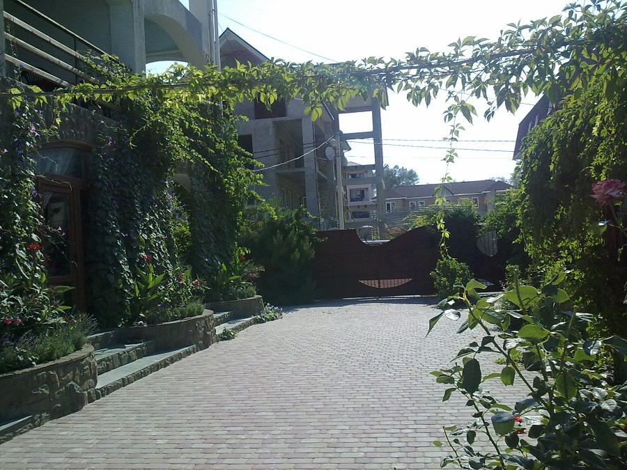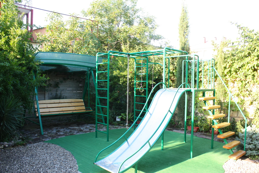Территория отеля очень привлекательна и ухожена. Здесь можно найти цветочные клумбы, уютную беседку, мангал и детскую площадку.