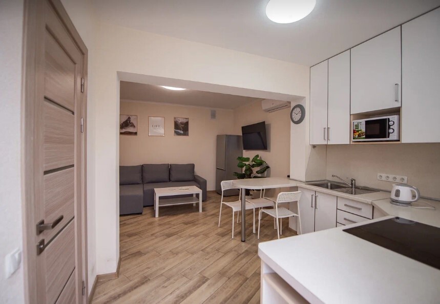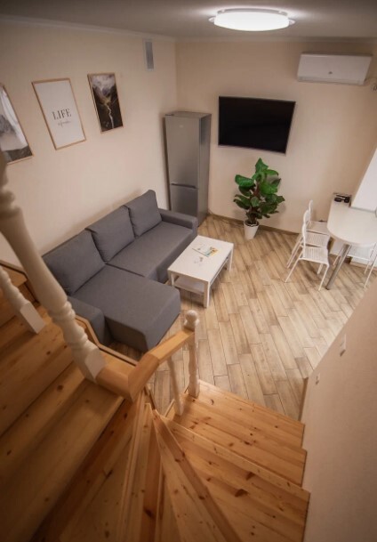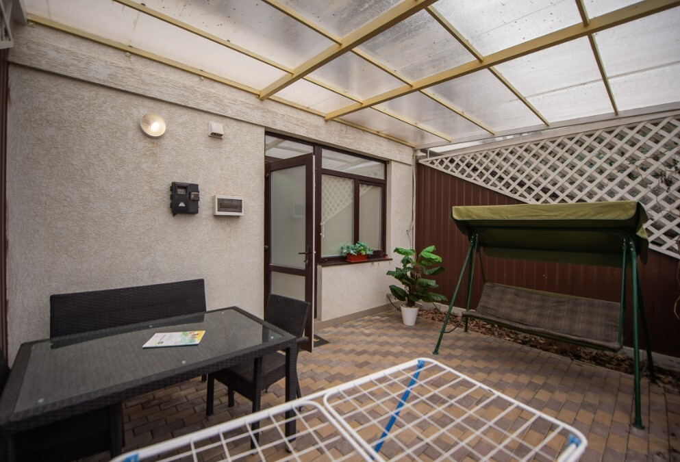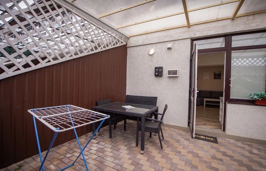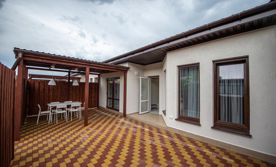 В доме есть все необходимое как для короткого, так и для длительного проживания (посуда, столовые приборы, техника, постельное белье/полотенца и т.д). Проживание доступно круглый год, теплые полы, бойлеры. Каждый дом имеет собственную террасу с обеденной зоной и выходом/входом на кухню.