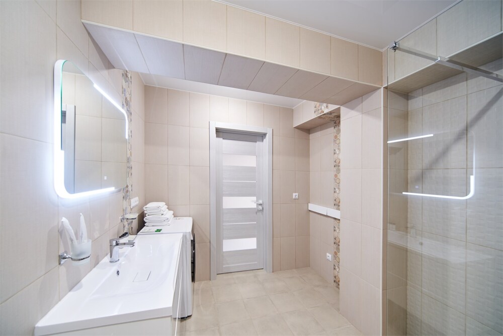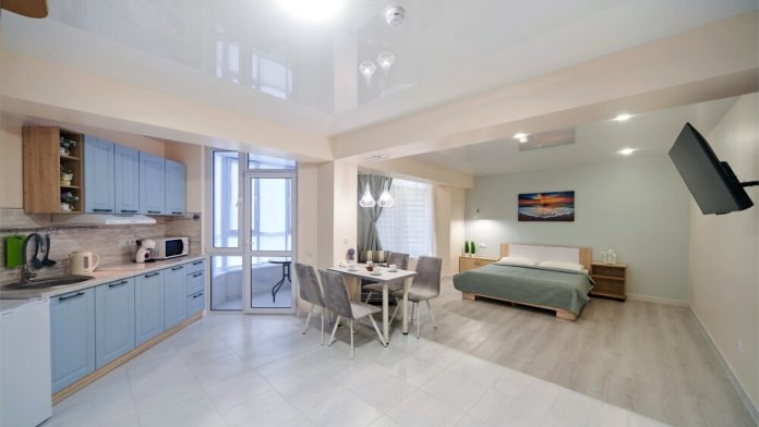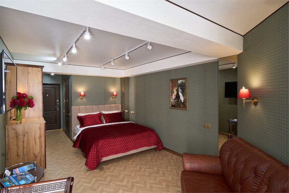 Апартаменты оснащены кроватью «King size», двуспальным раскладным диваном и односпальным раскладным креслом, что делает их идеальным выбором для семьи или небольшой компании.