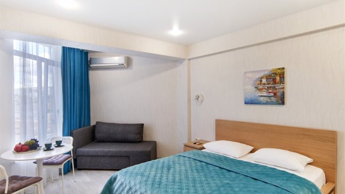 В апартаментах предусмотрена двуспальная кровать и одно дополнительное место, что делает их отличным выбором как для пары, так и для семьи с ребенком.