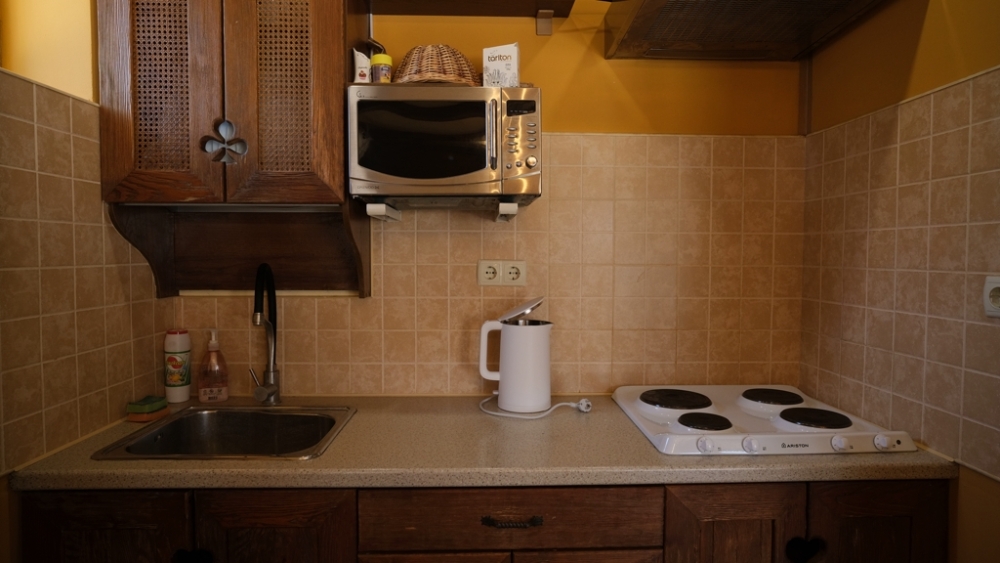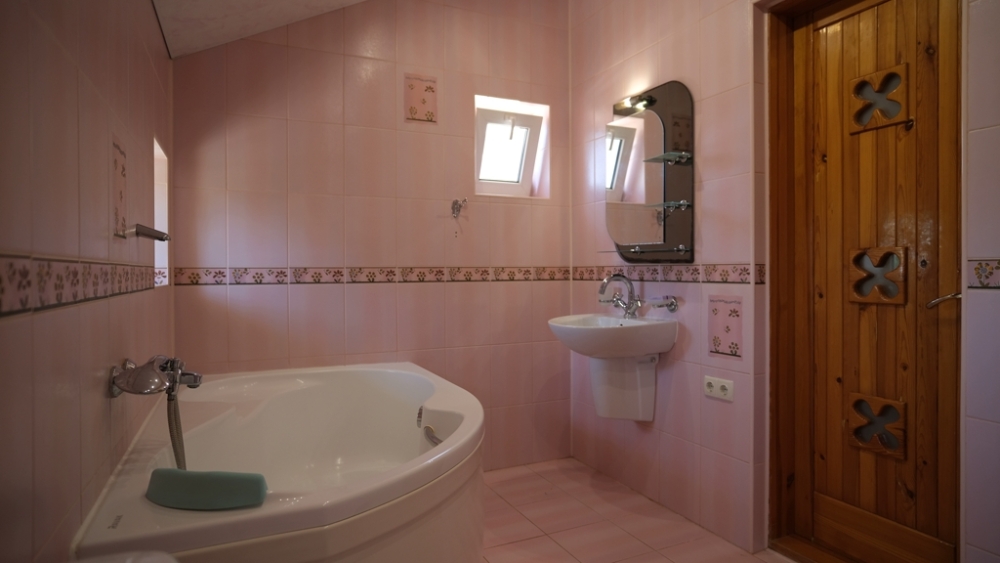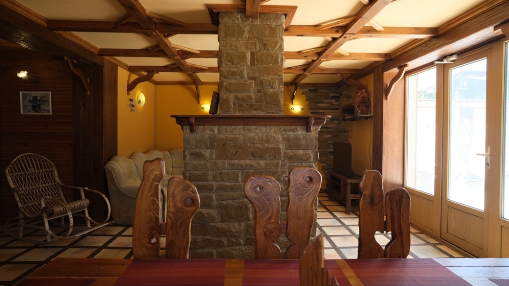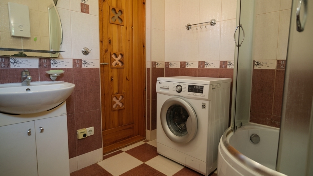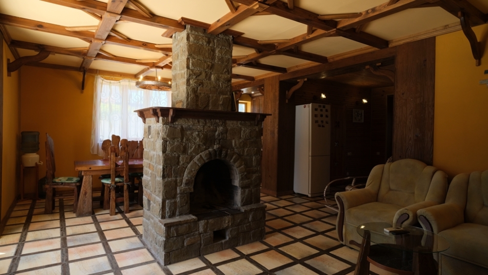 На первом этаже гостиная и кухня - столовая. Камин на дровах. Санузел с душевой кабиной, биде. В гостиной диван, столик, телевизор, цифровое тв, интернет. Cтиральная машина-автомат.