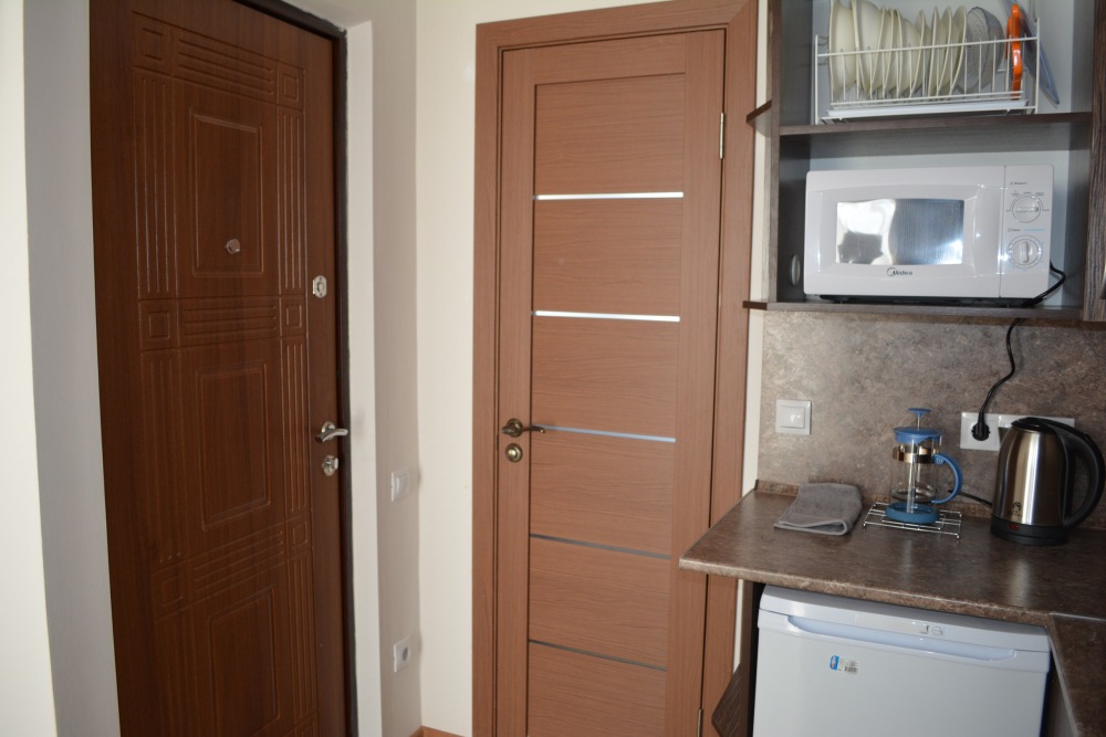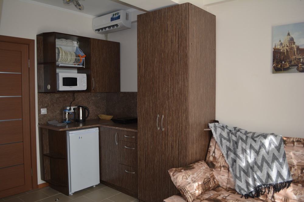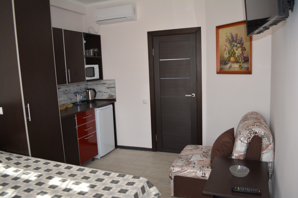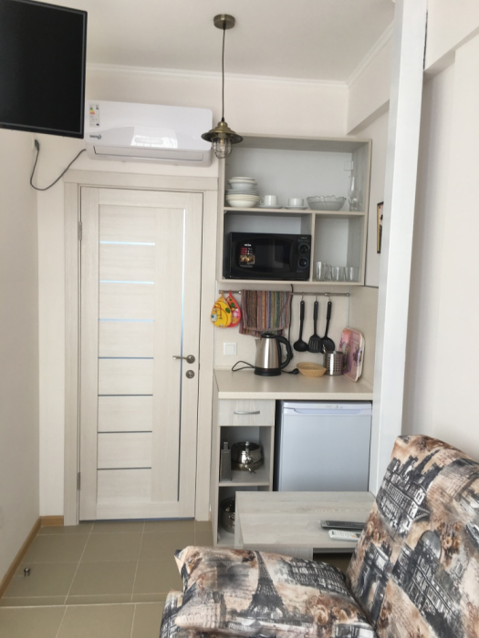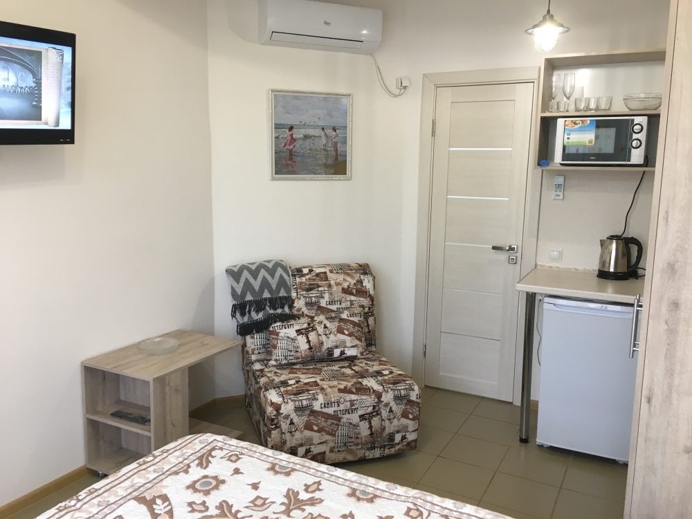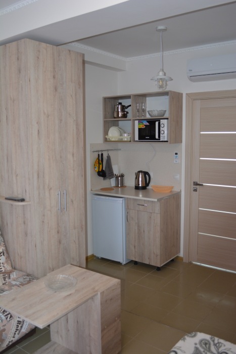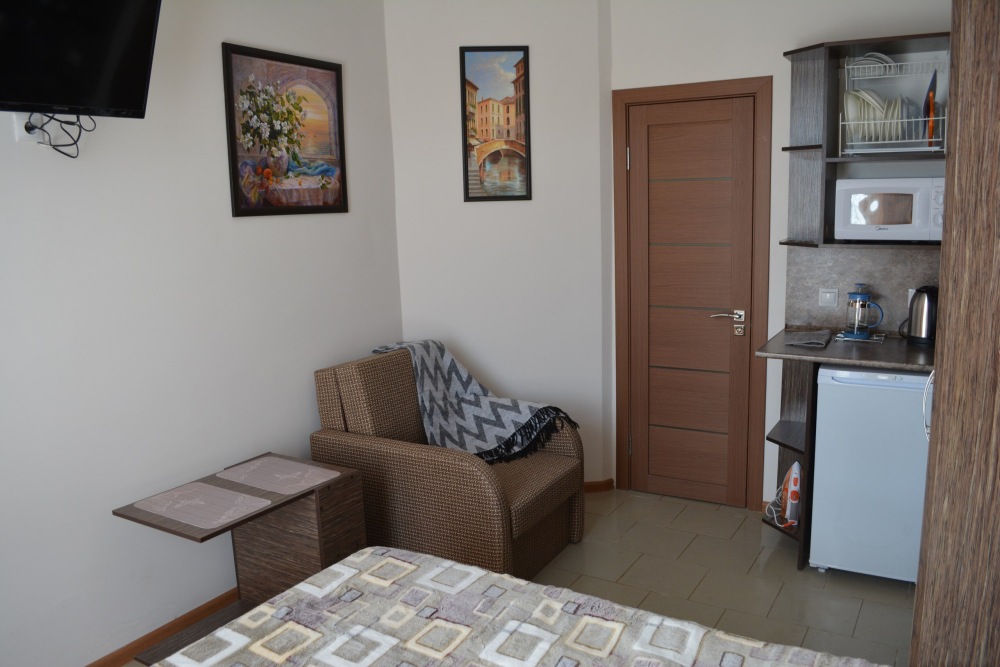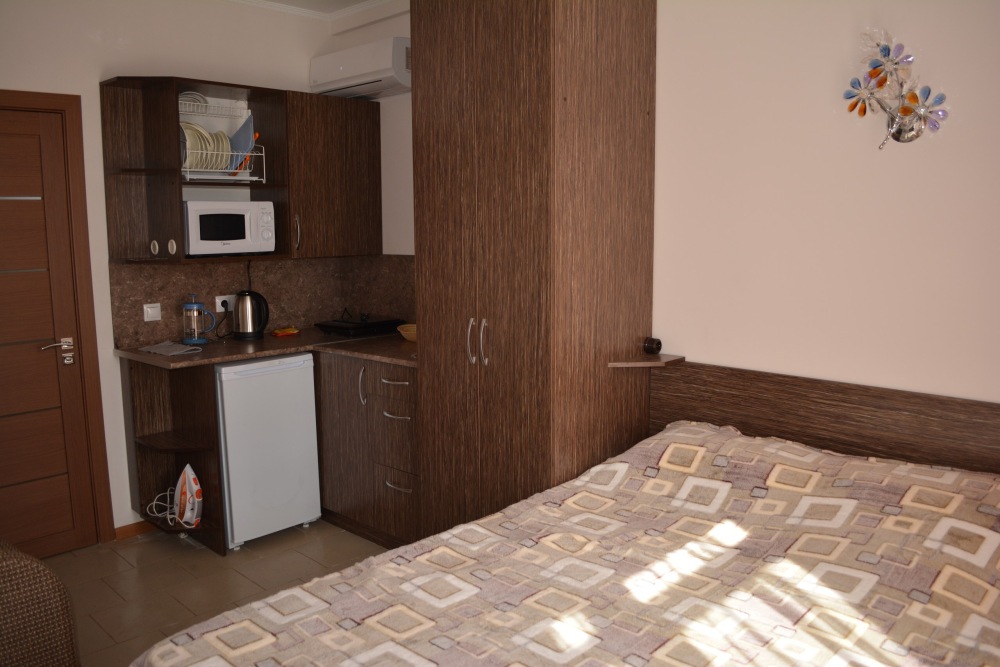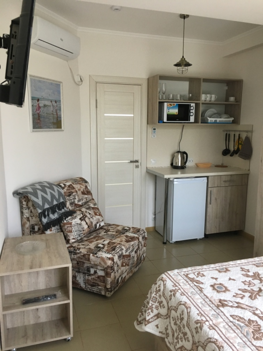 12 номеров расположены на трех этажах. На второй и третий этажи ведет лестница. Все номера оснащены кондиционерами, холодильниками, телевизорами с плоским экраном, Wi-Fi. В каждом номере встроена мини-кухня с микроволновой печью, чайником, необходимой посудой.