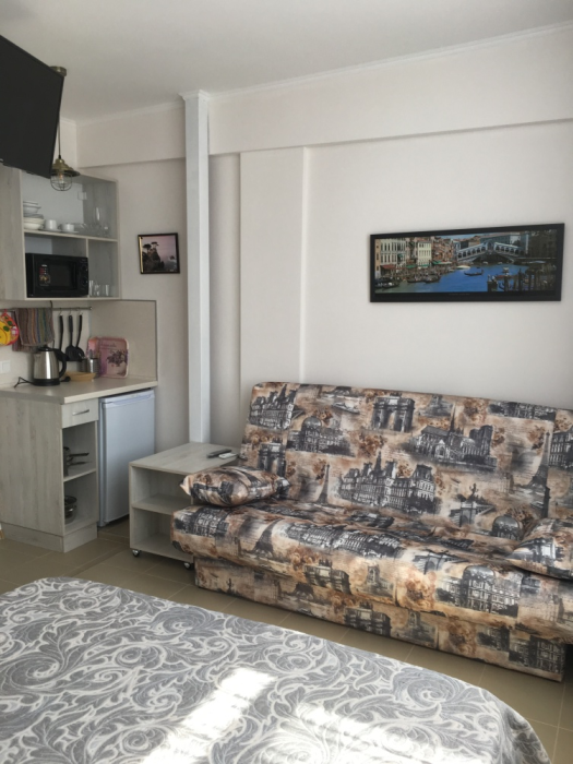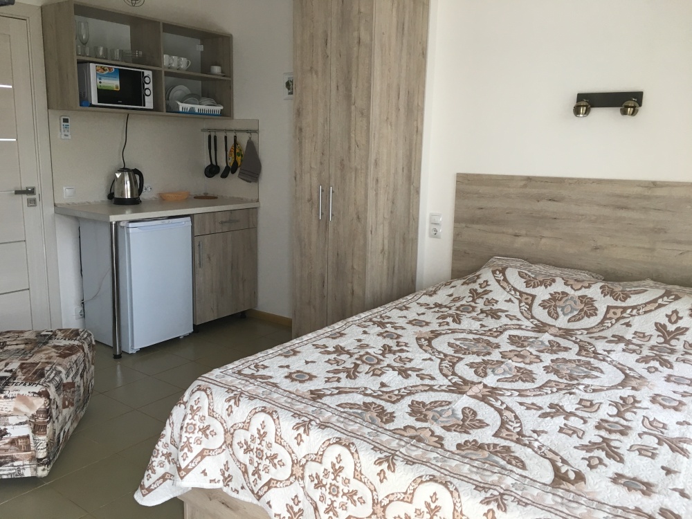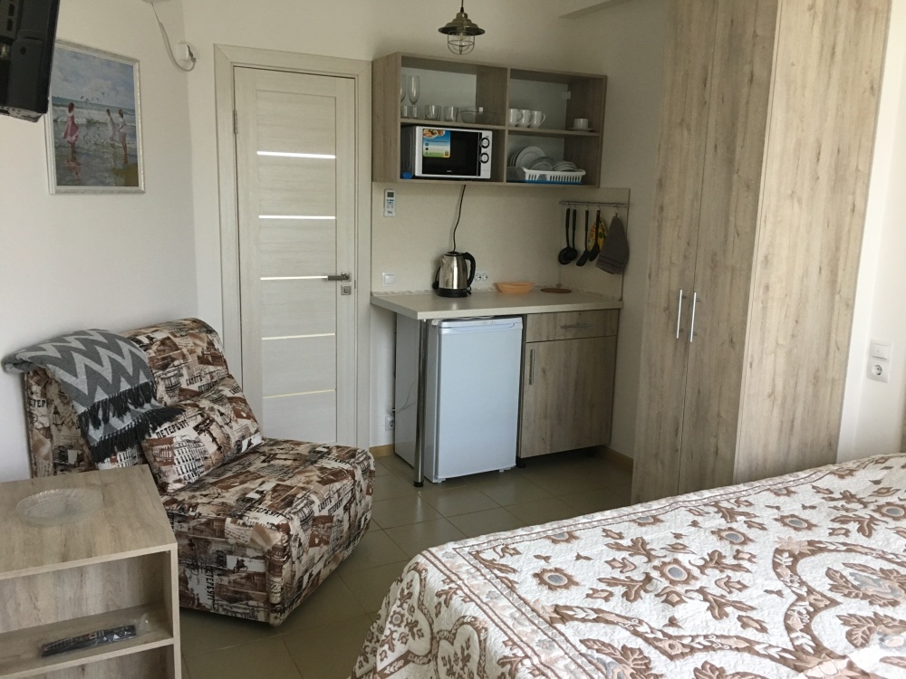Наш апарт-отель расположен при въезде в историческую часть города Евпатория, в 150 метрах от кромки моря (пляж «Оазис»).